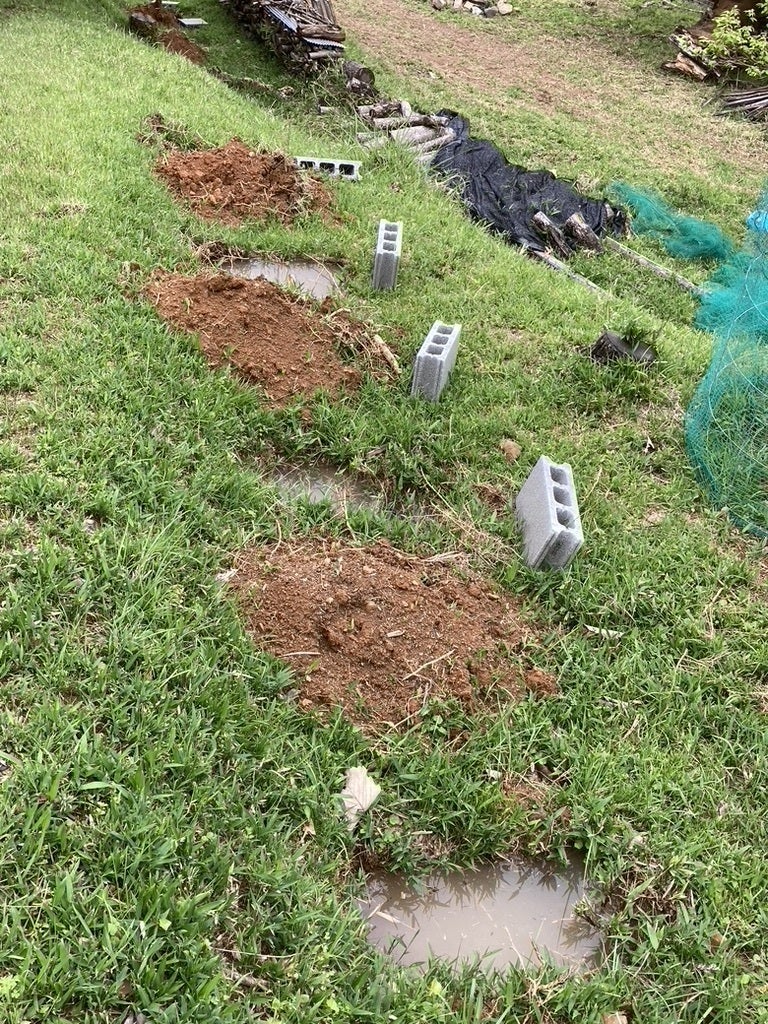 ブロックを埋めるために開けた穴に水が溜まるところをぐるりと巡って確認して、どうしたものか?と悩みつつも〜