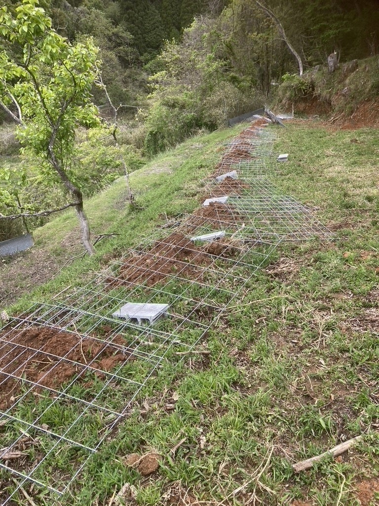 ワイヤーメッシュと鉄筋を運んで三十箇所分配り