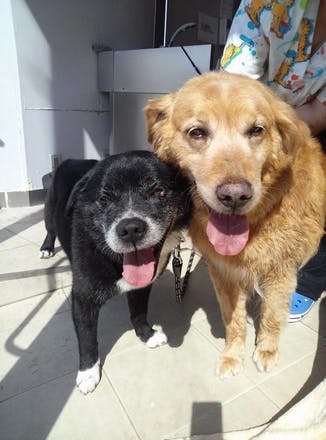 やって来たムクと、母犬のナナ。