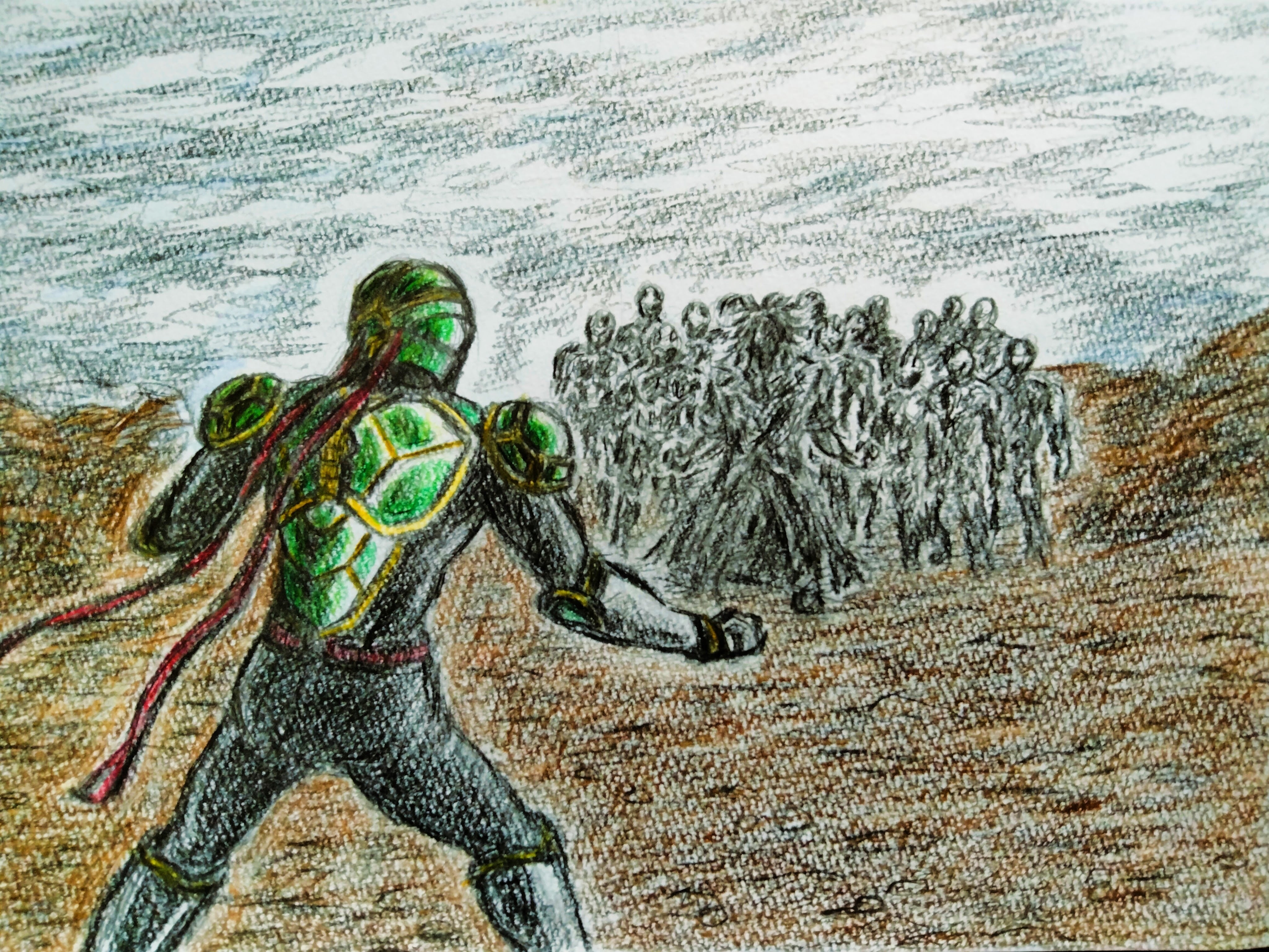 1年が過ぎた頃、いい出会いがあり、少しずつ変わることができてきて・・・そして描いたのが、オリジナルヒーローの漫画でした。