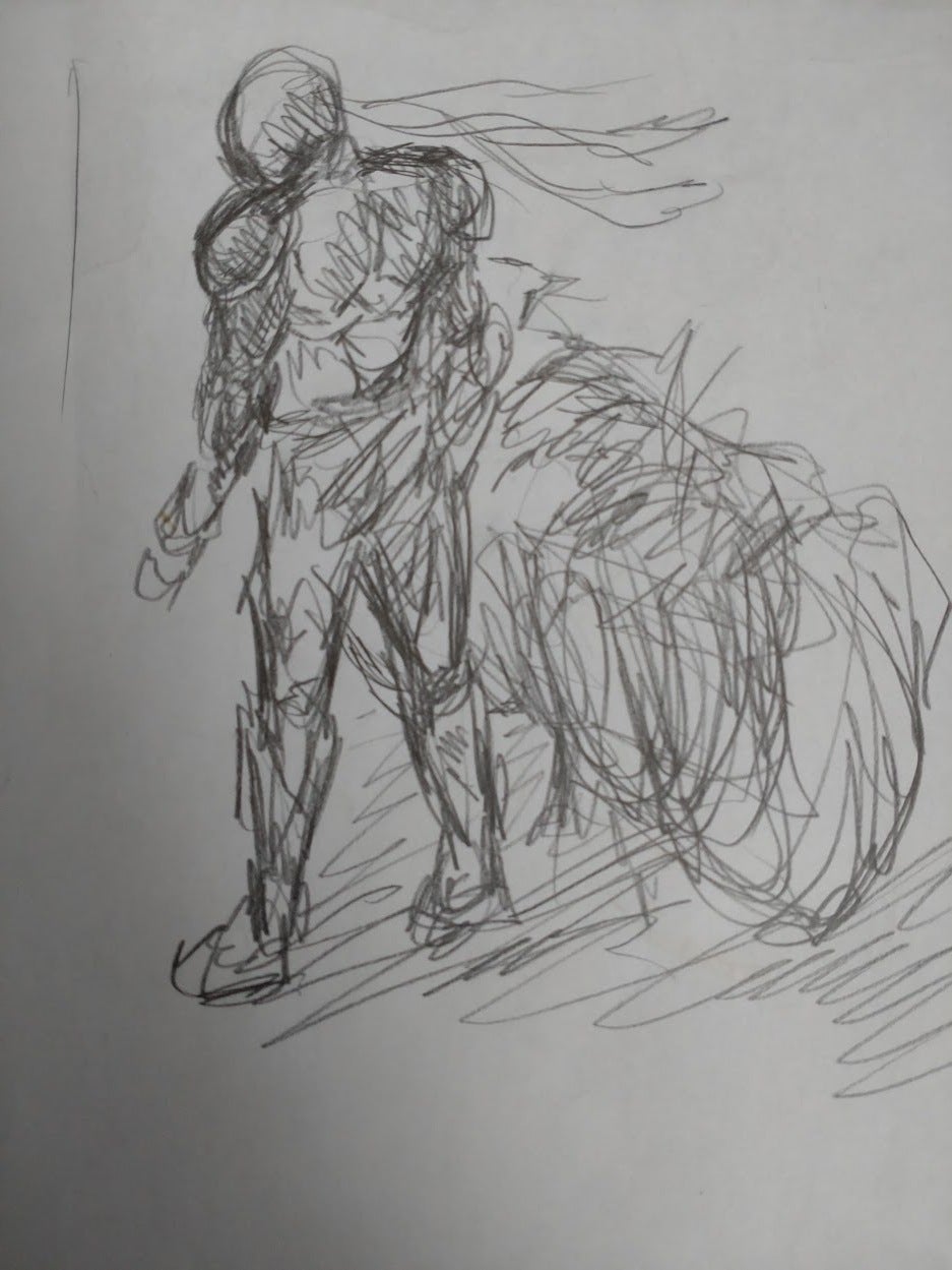 筆ペンで描き、色は付けない予定です。