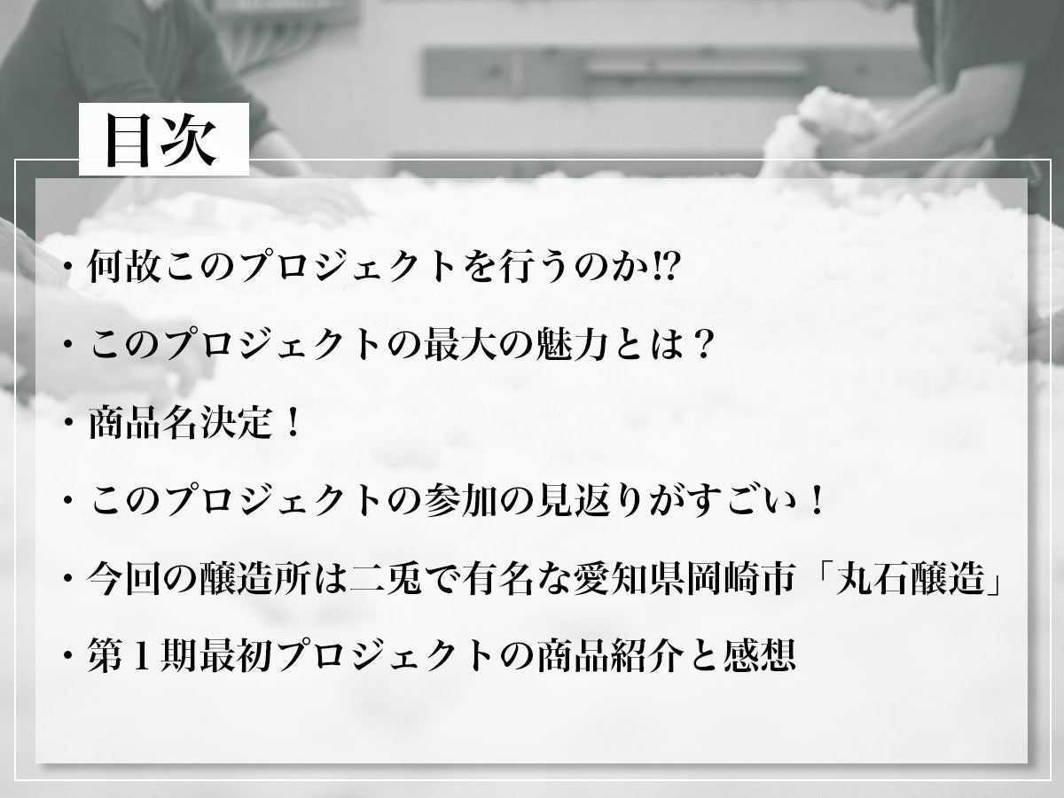 この企画は愛知県7蔵の醸造家達が自社のブランドを飛び越えて、「匿名を条件に1つの醸造所」に集結し日本酒を醸す前代未聞のプロジェクトです。