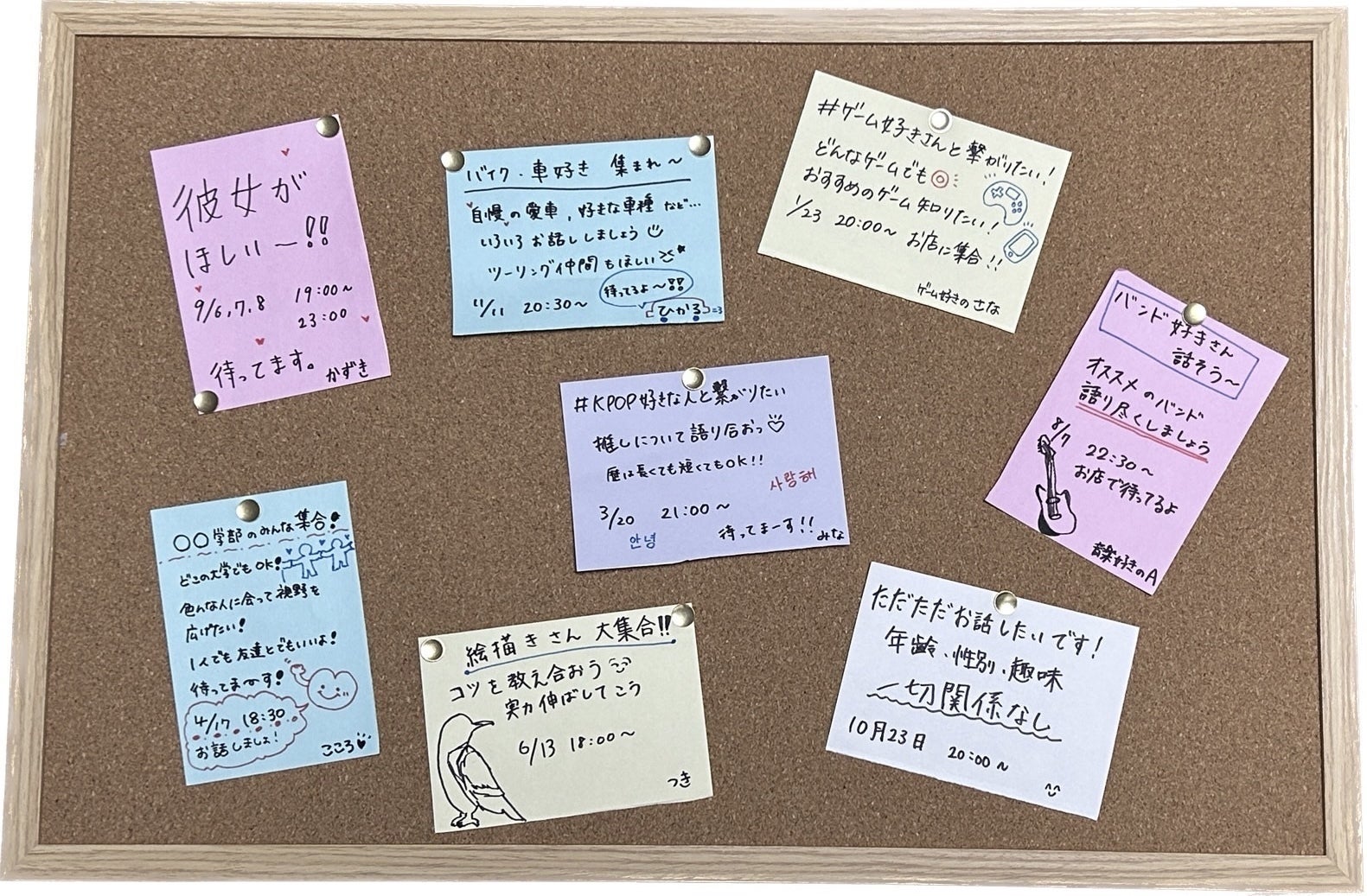 このボードは、人とのつながりを求める人のための掲示板のような役割を果たします。
