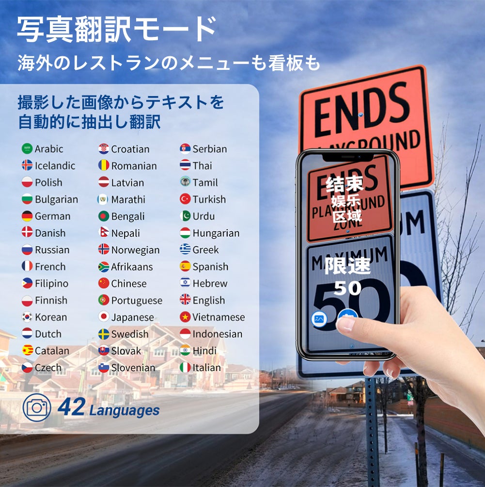※オンライン翻訳言語は現在127言語、オフライン翻訳言語は現在9言語となります。左記以外の言語の追加の際は別途アプリ内で購入が必要なります。