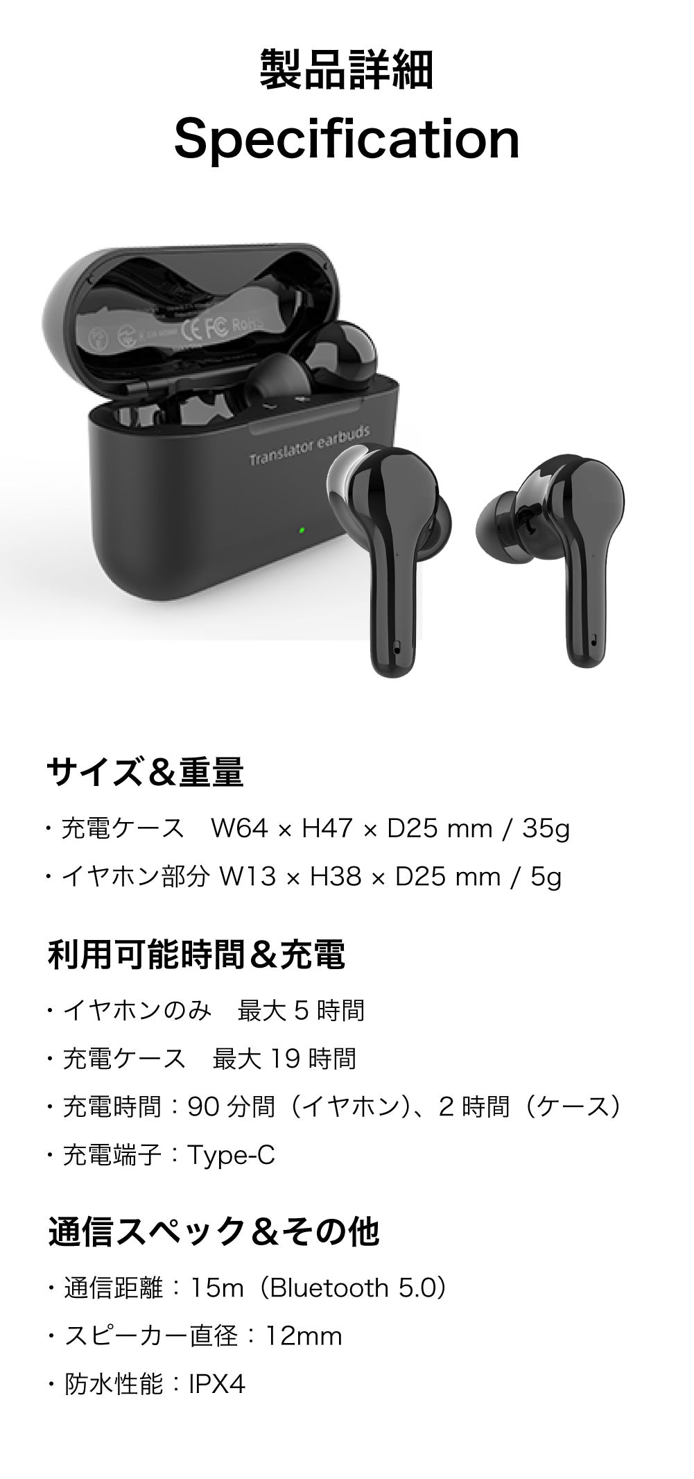 翻訳だけじゃなく、ワイヤレスイヤホンとしても利用可能。
