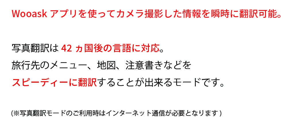 ※アプリケーションはご利用者様のフィードバックに基づいて定期的に アップグレードされます。翻訳言語数などの翻訳機能と精度を向上させます。