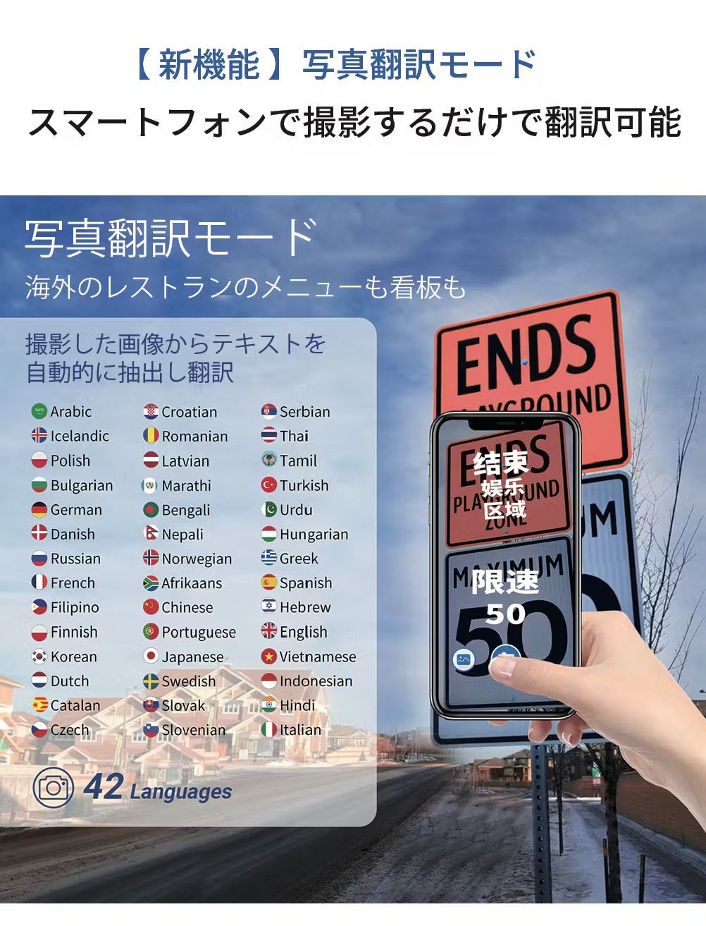 ・スマホで写真を撮るだけで自動的に写真からテキスト読み込み翻訳する「写真翻訳」