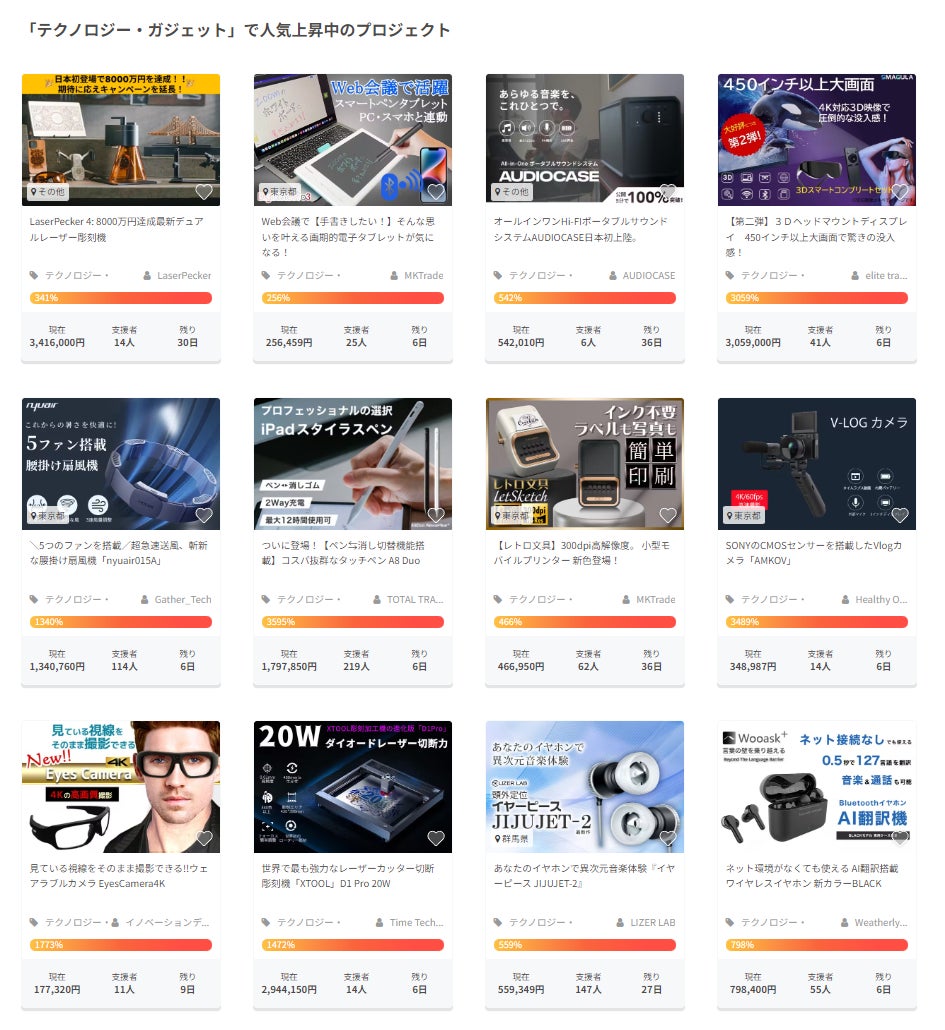 「テクノロジー・ガジェット」で人気上昇中のプロジェクトに上位に掲載されました!!