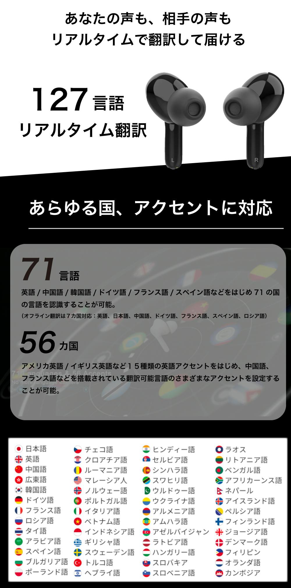 Wooask+M6 Blackは、最大127言語の翻訳が可能です。
