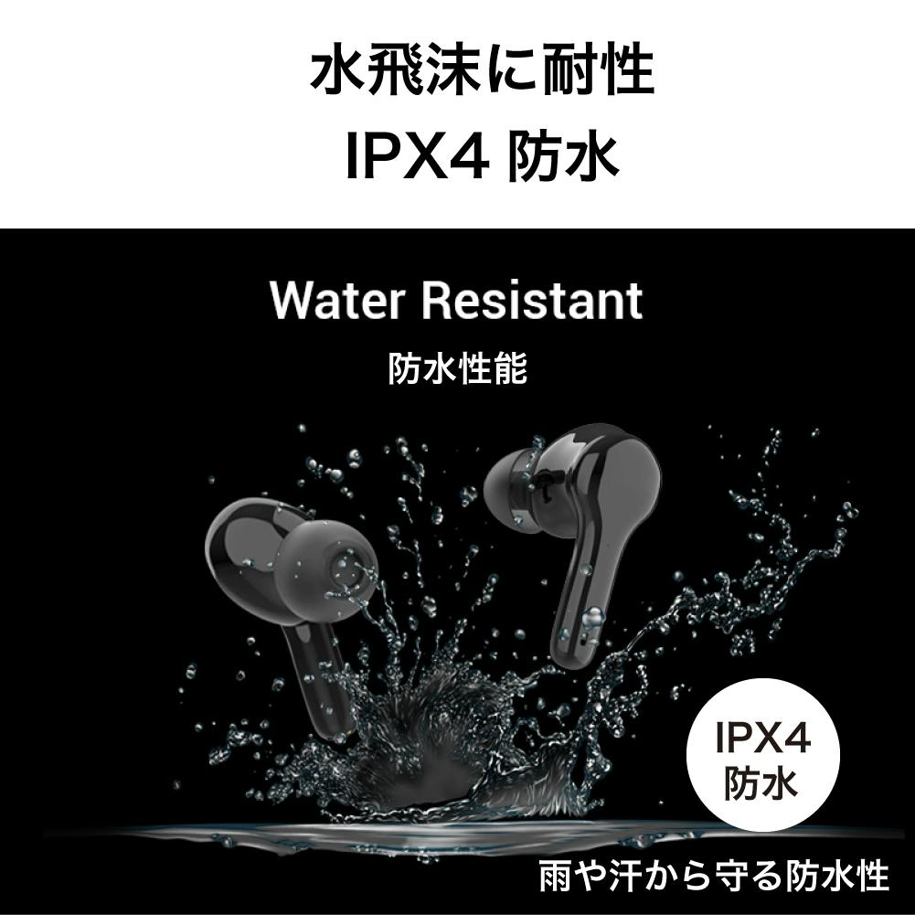 あらゆる方向からの水飛沫に耐性を持つIPX4防水搭載。