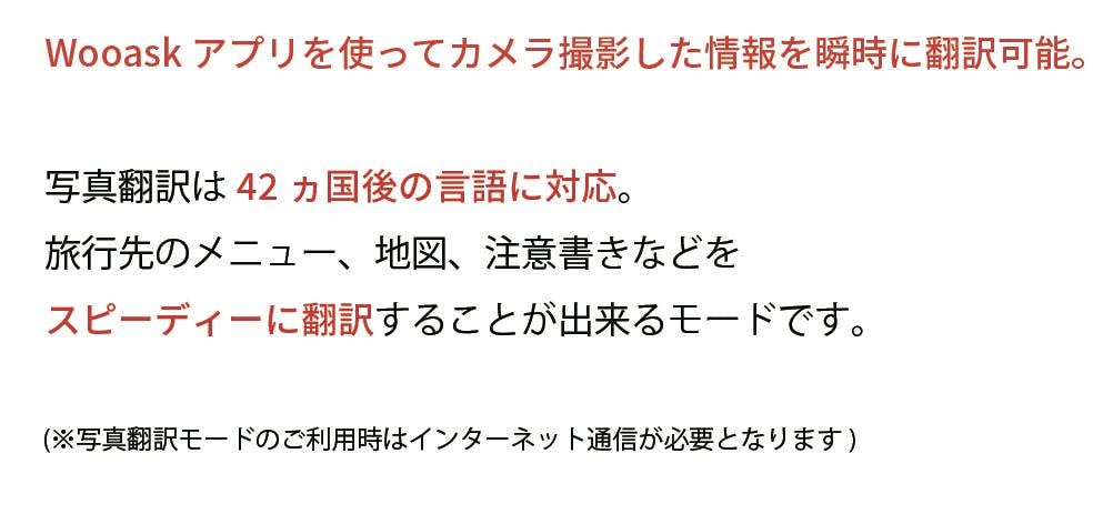 ※アプリケーションはご利用者様のフィードバックに基づいて定期的に アップグレードされます。翻訳言語数などの翻訳機能と精度を向上させます。