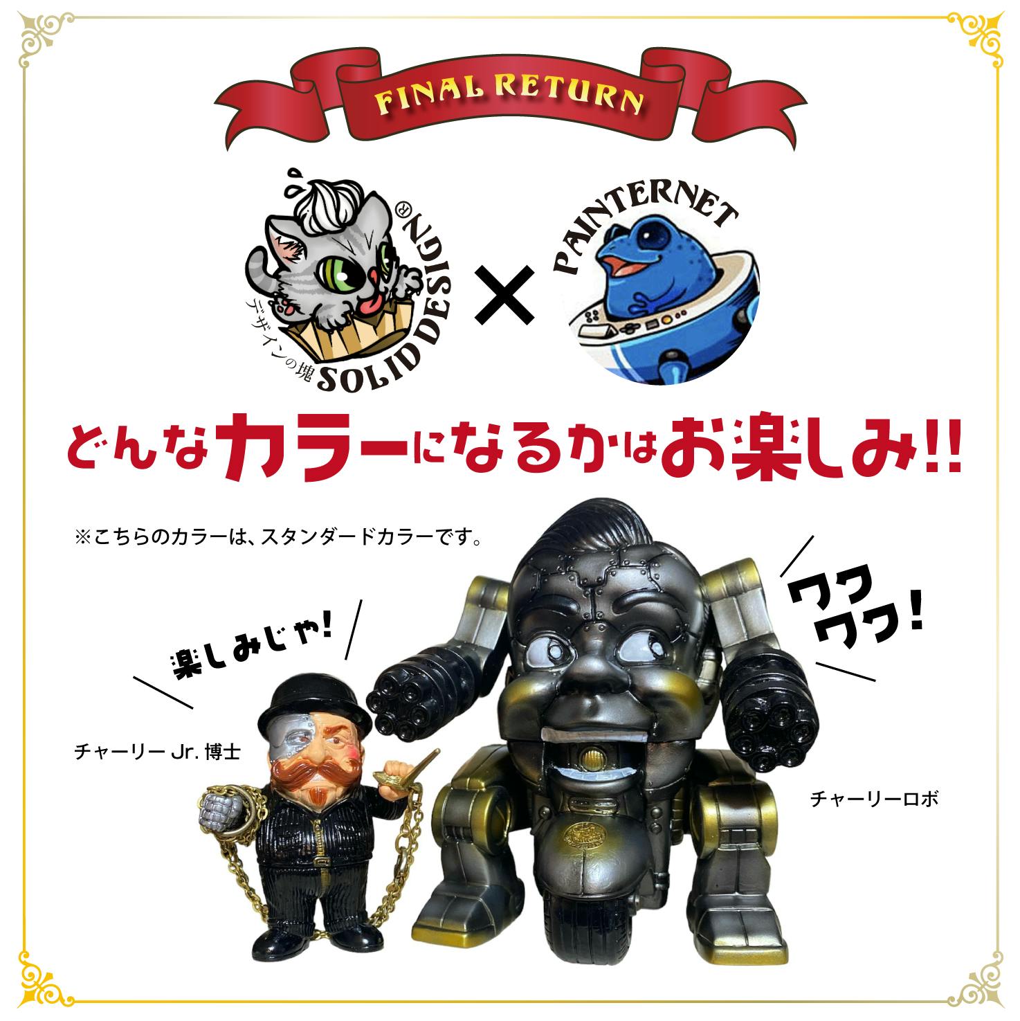 チャーリーロボとチャーリーJr.博士のセットを、ぺインターネットさんカラーでお届け致します!これがファイナルリターンとなります!!(`・ω・´)