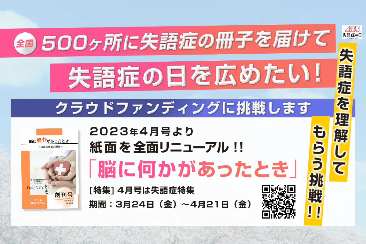 本日11:00から失語症の日2023 クラウドファンディングスタートいたしました。 28日間の挑戦です。最終日までよろしくお願いいたします!