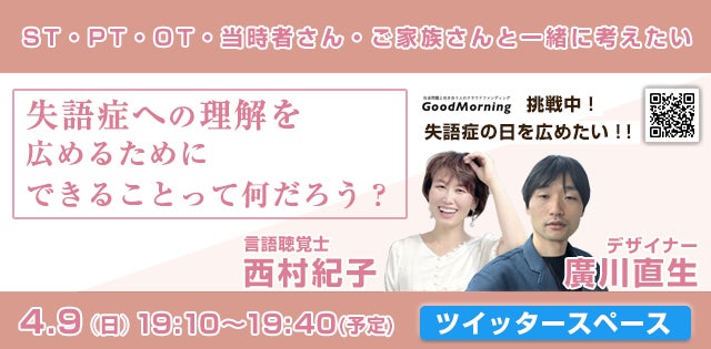 NPO法人Reジョブ大阪で共に脳損傷当事者実行委員として活動している合田仁さんと脳損傷者がなる可能性のある失語症で二人とも失語症にはなっていないという立場でこの企画を応援するのはなぜか語り合いたいと思います。