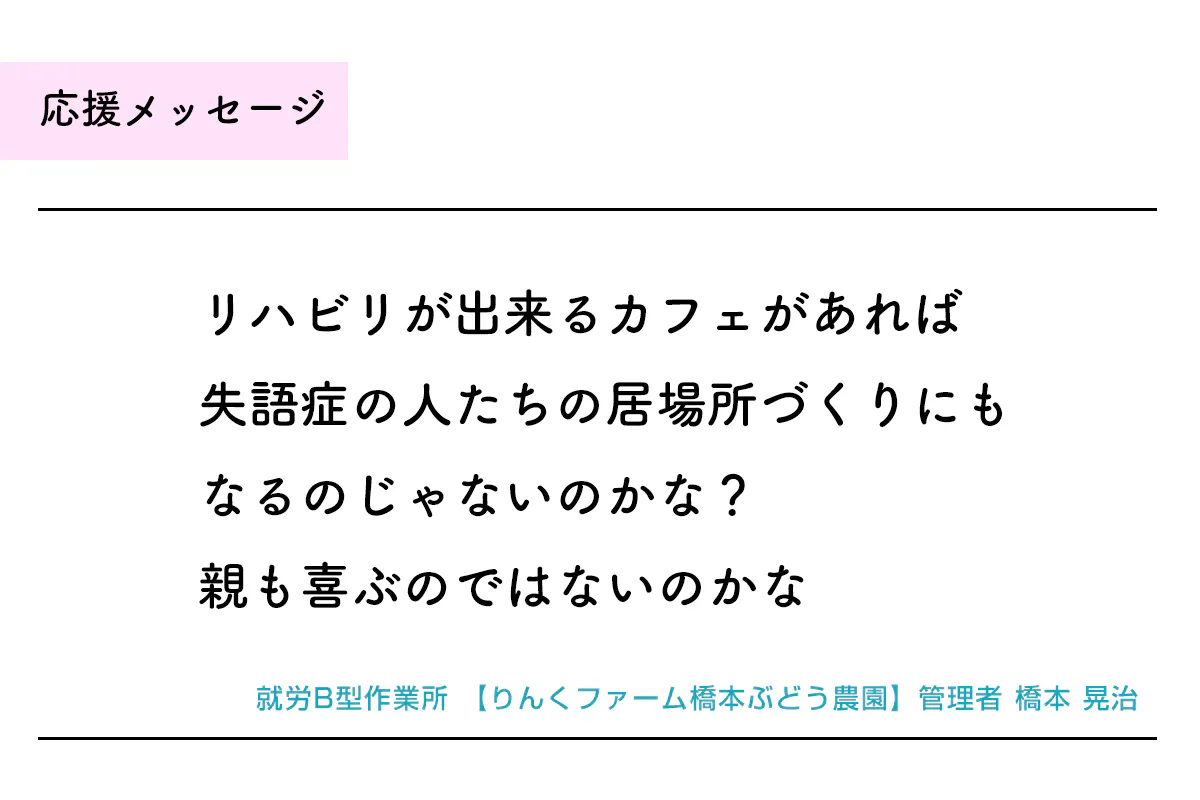 お母さまが失語症になった経験をお持ちの橋本 晃治さんより応援メッセージが届きました!