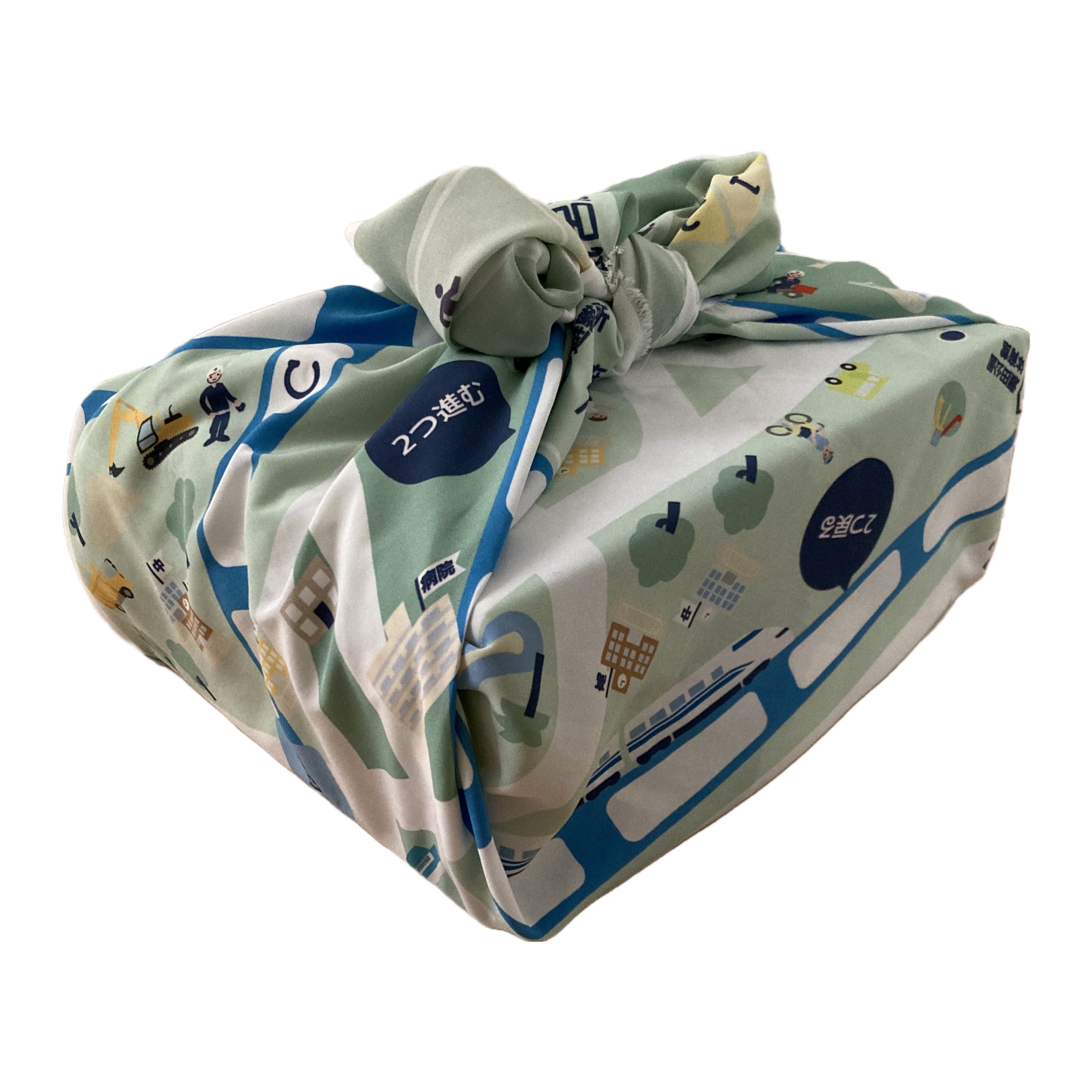 - このお風呂敷で遊ぶ車や電車のおもちゃの収納としても使えます。