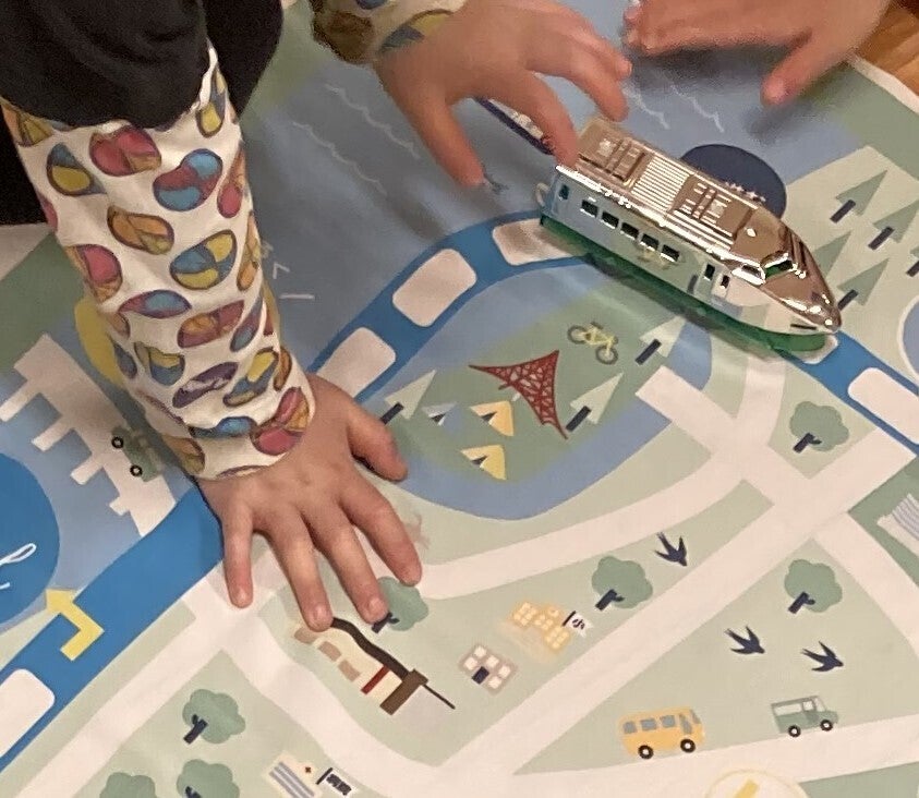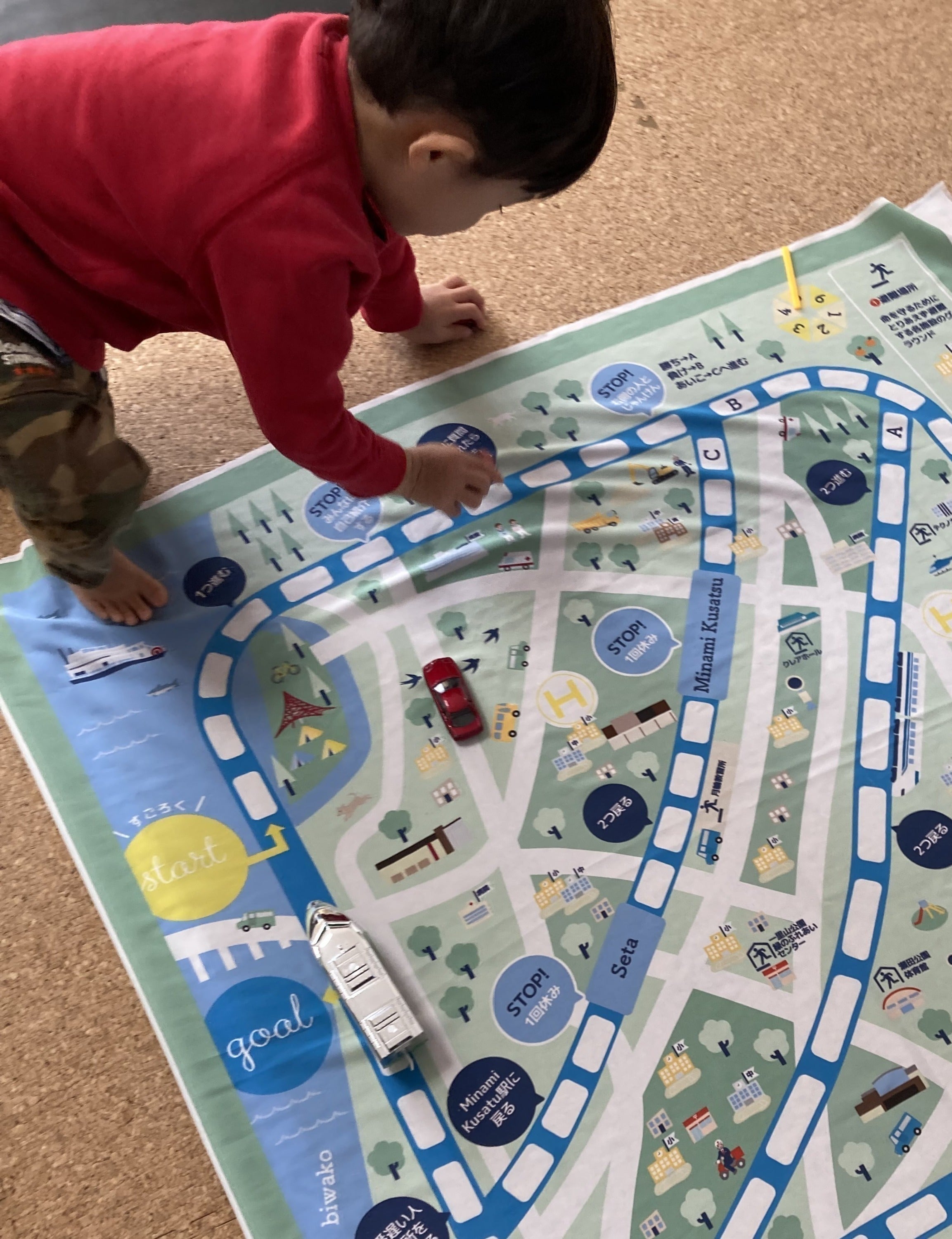 しかも道路や線路がデザインされているので、車や電車好きな子がミニカーを