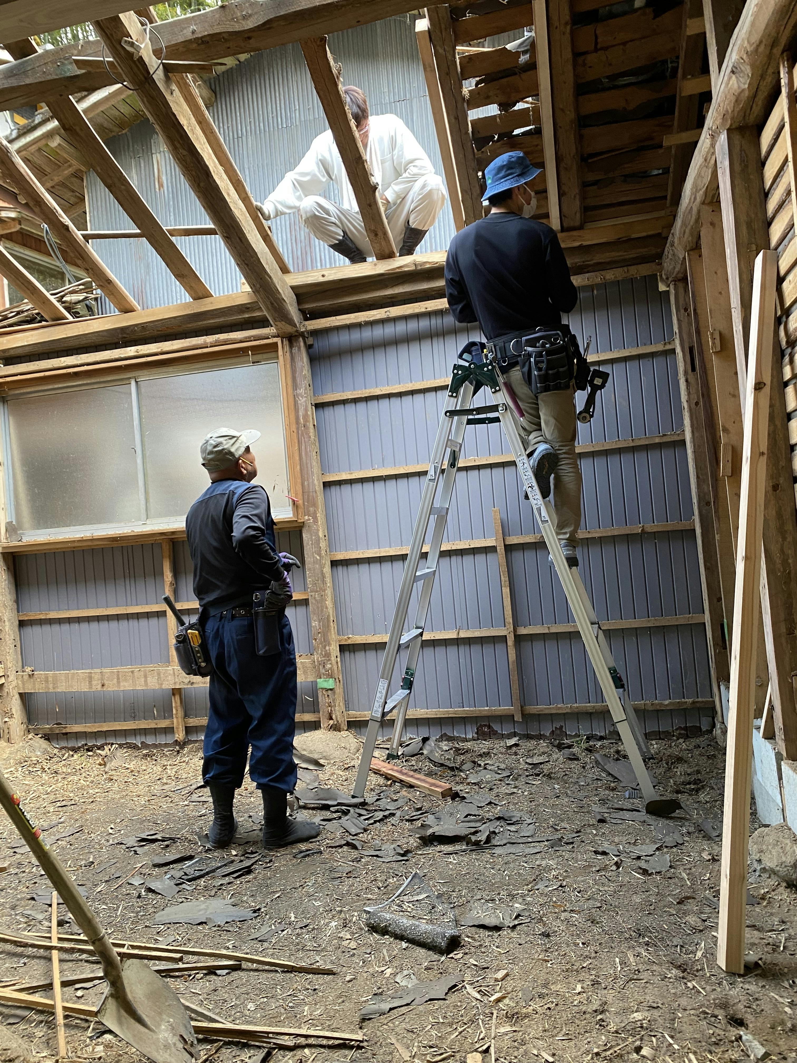2023/05/15 03:27雨の中、やすんちゅさん達がお手伝いに来て下さいました。自らも、古民家再生を目指す幼なじみのグループです。キッチンの流し台の搬出とタイル剥がしをお願いしました。あっという間に作業終了です(若いなぁ♪)これからも宜しくお願い致します。 もっと見る