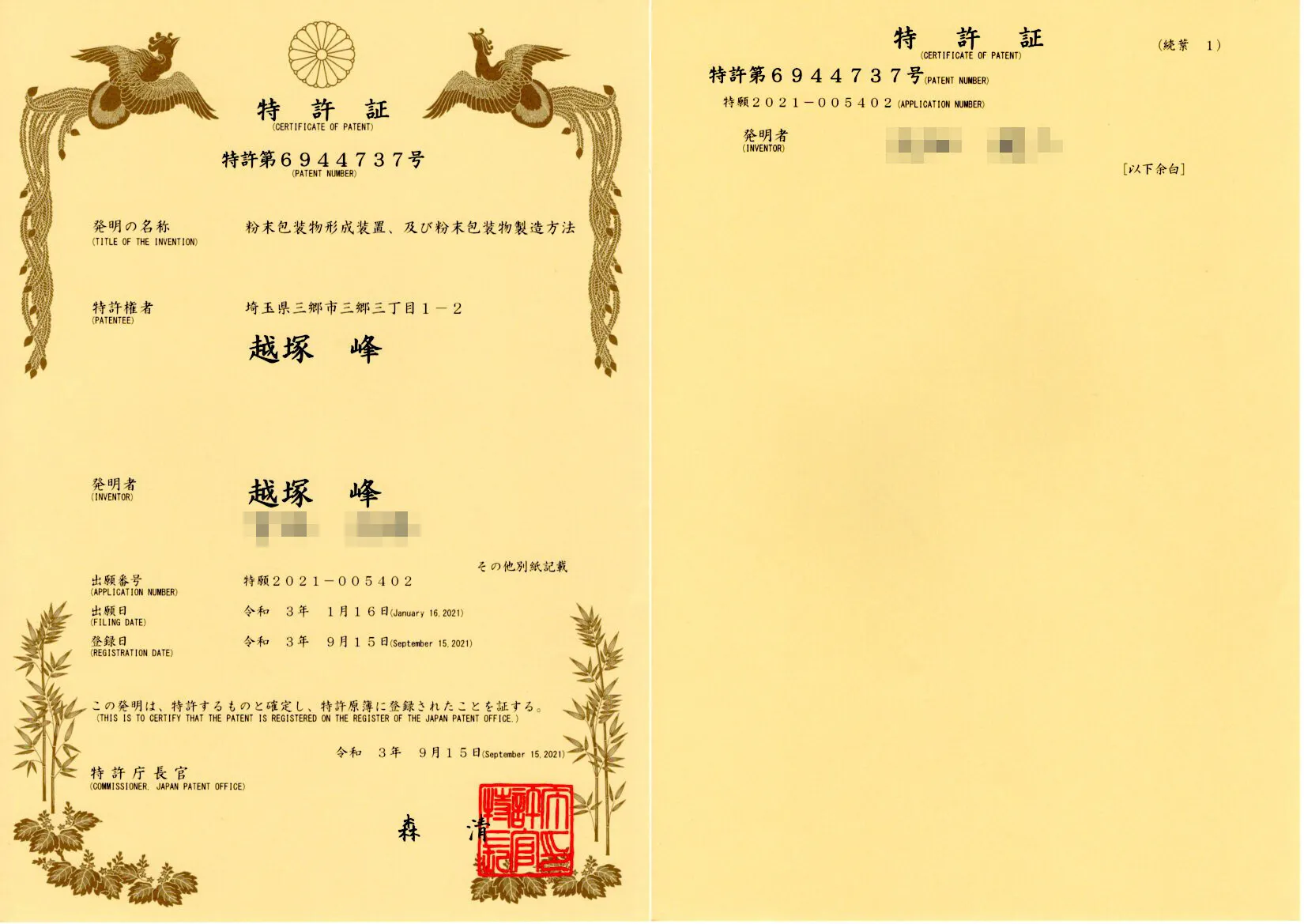 本プロジェクト製品は下記特許により知的財産権を保護しております。