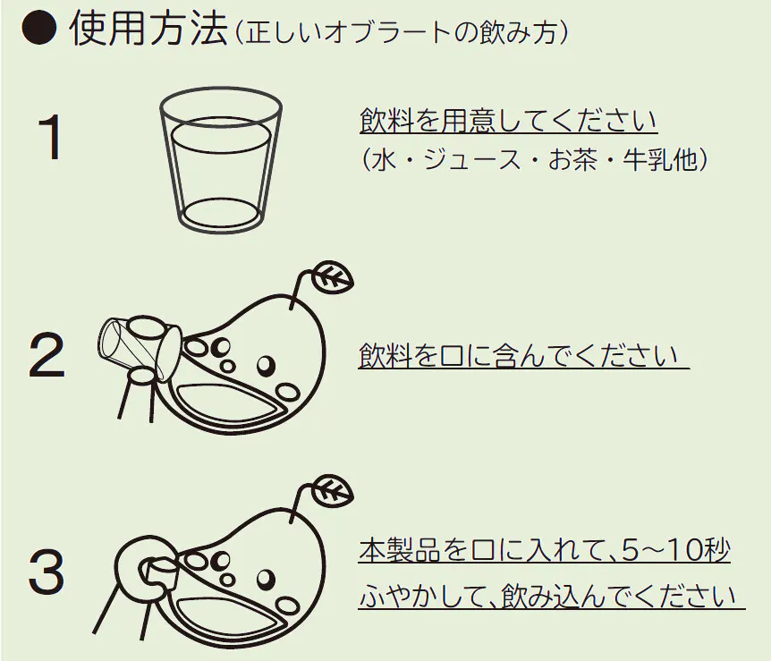 慣れないうちはオレンジジュース、乳酸菌飲料などの少し甘酸っぱくてトロミのある飲み物がオススメです。