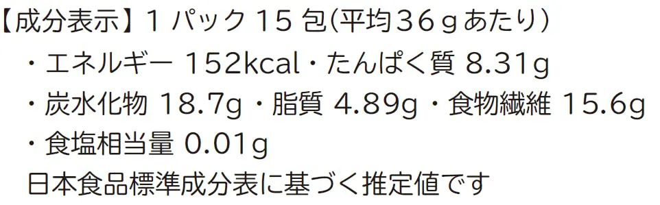 ・食物繊維を多く含みますので胃腸障害がある方はお控えください。