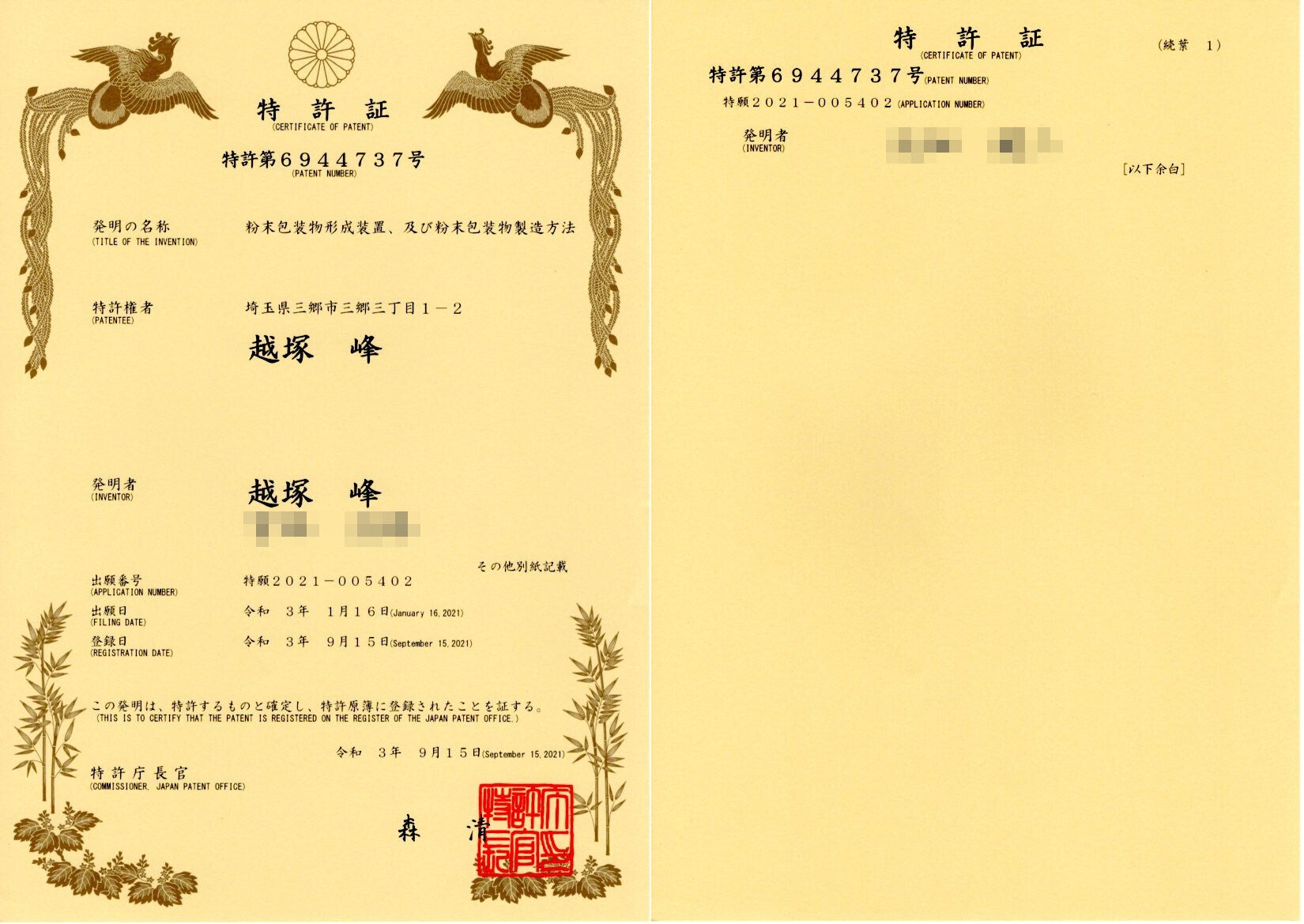 本プロジェクト製品は下記特許により知的財産権を保護しております。