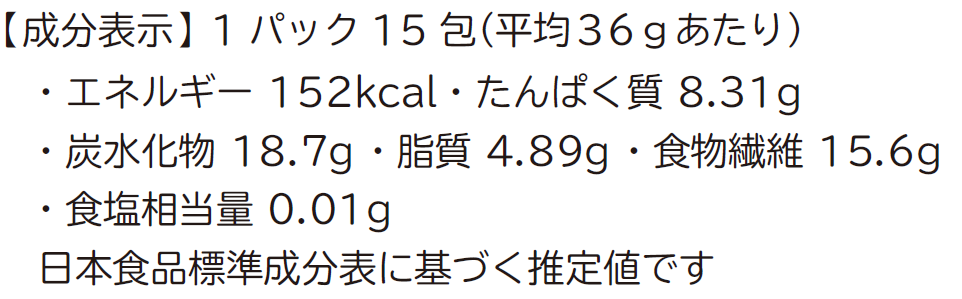 ・食物繊維を多く含みますので胃腸障害がある方はお控えください。