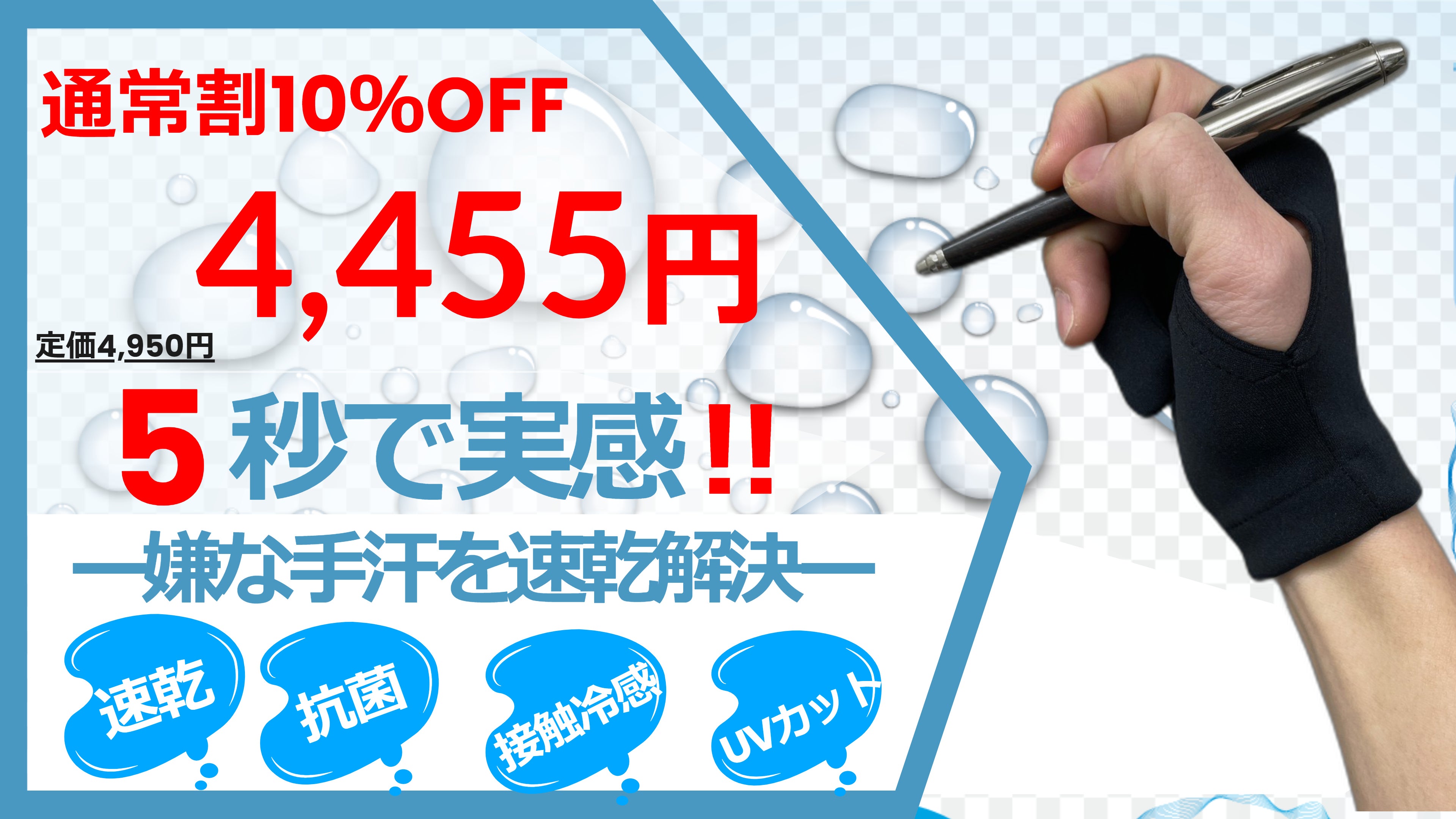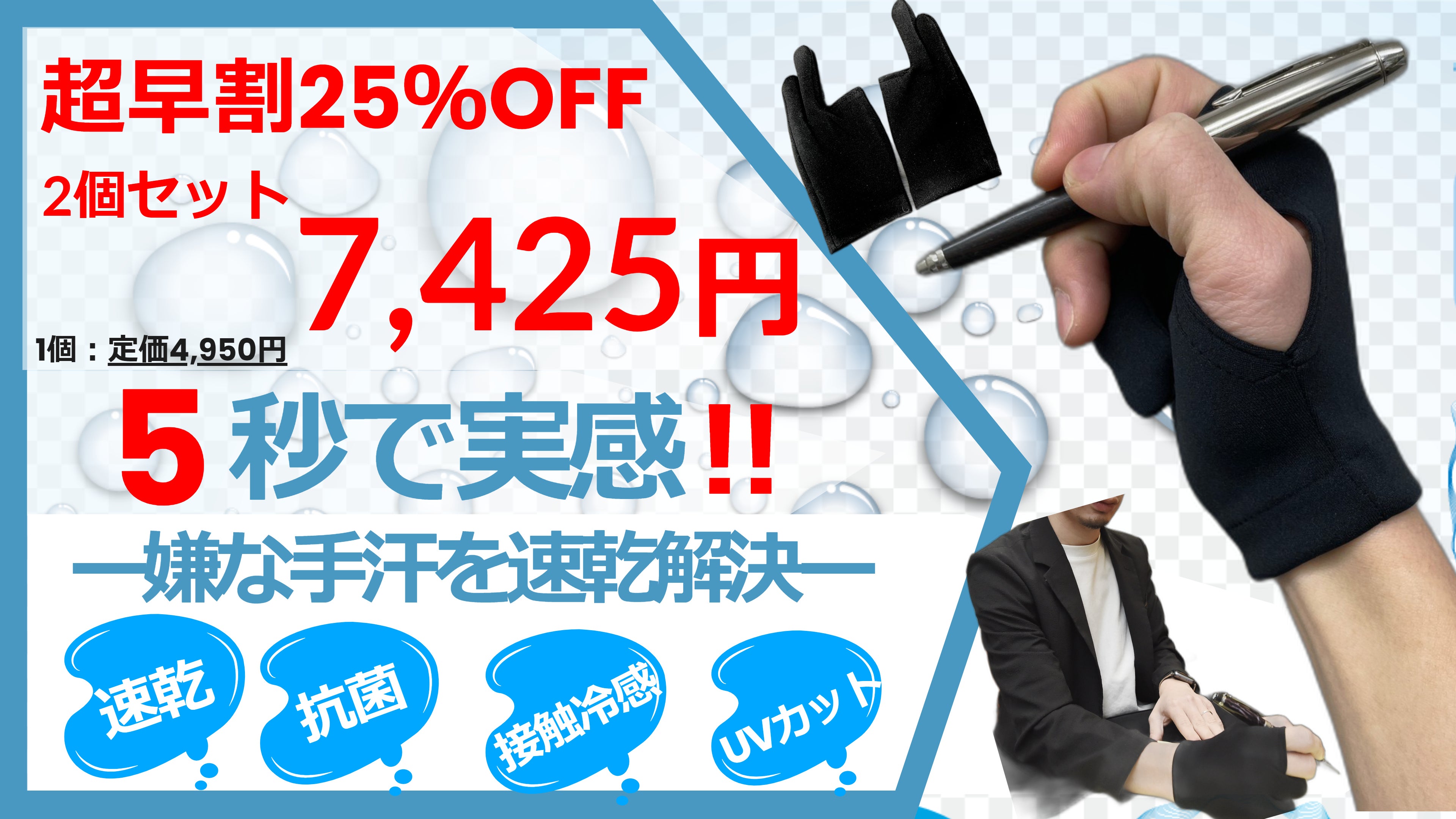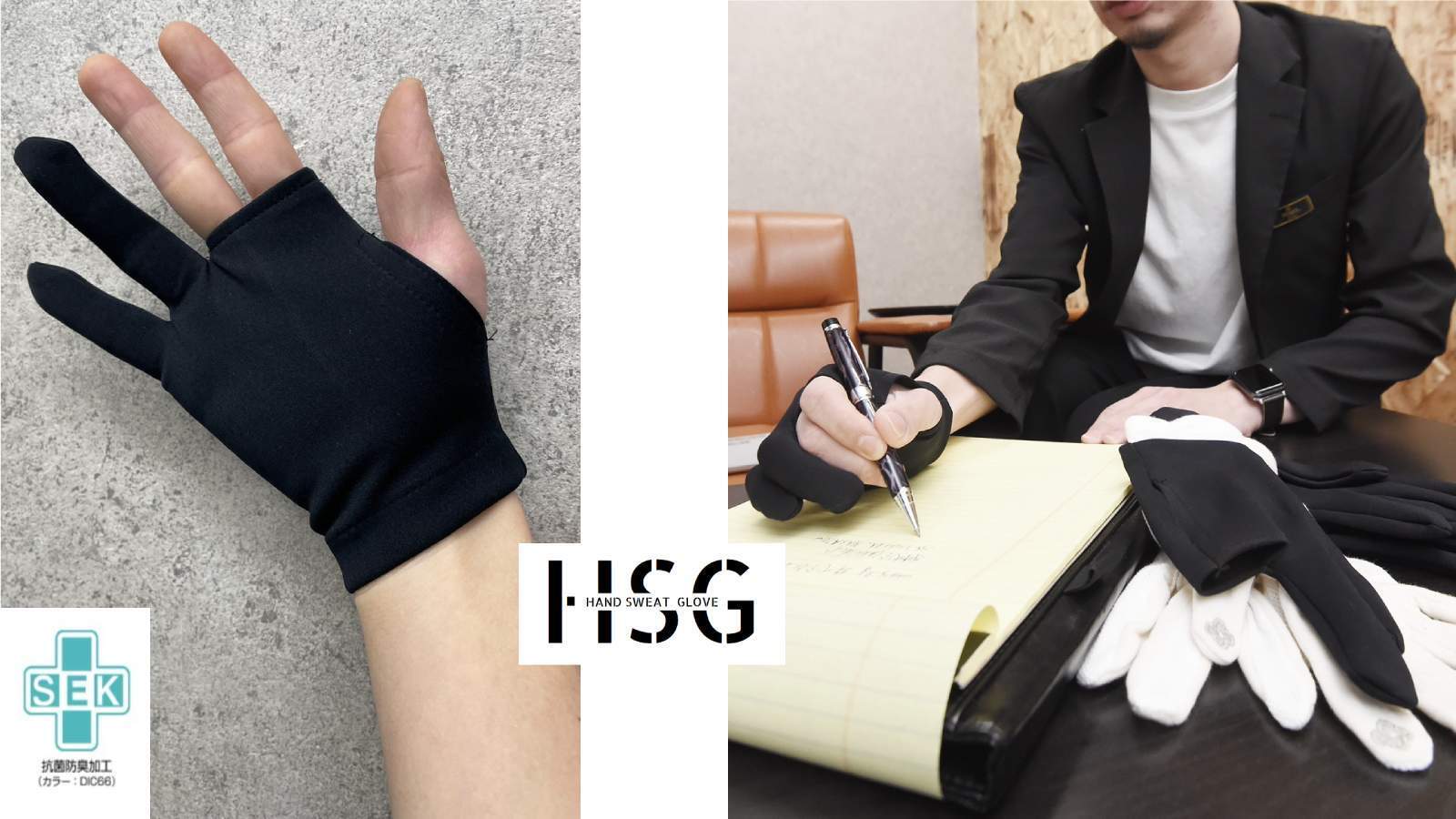 そんなお悩みを解決するべく、着用することで手汗の悩みから解放される手袋を開発いたしました。