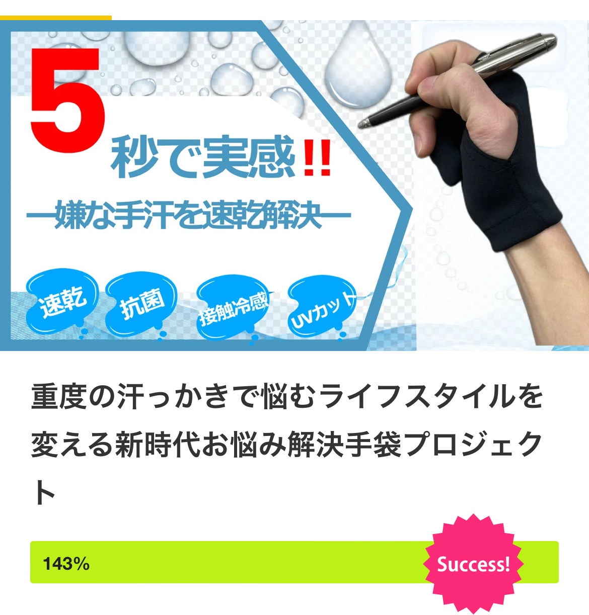 2023/11/16 17:11ご覧いただき誠にありがとう御座います。別プロジェクトにて実施した企画の追加プロジェクト企画になります。ぜひご支援のほどよろしくお願い致しますまず多汗症とは何か?知って頂いてますでしょうか?多汗症は恥ずかしい病気だ…そう思いながら、病を隠してひっそり生きている方がとても多い事だと思います。私自身重度の多汗症患者だから、あなたの心境が十分にわかります。幼少時代から発症し、年々年を重ねるにつれて、汗に対する気掛かりが出てきました。本当に大変です…見た目からはそんな大変な病気には見えないですが、人の何倍の気遣い配らないと過ごせなく心に攻撃されるメンタル的な難病だと思います。実際この症状により働ける職種、働く職種が実は限られています。コロナ禍の影響にもより、さらに就職難の時代に+α影響が出ます。病気の知識は自分や相手の心と身体を... もっと見る