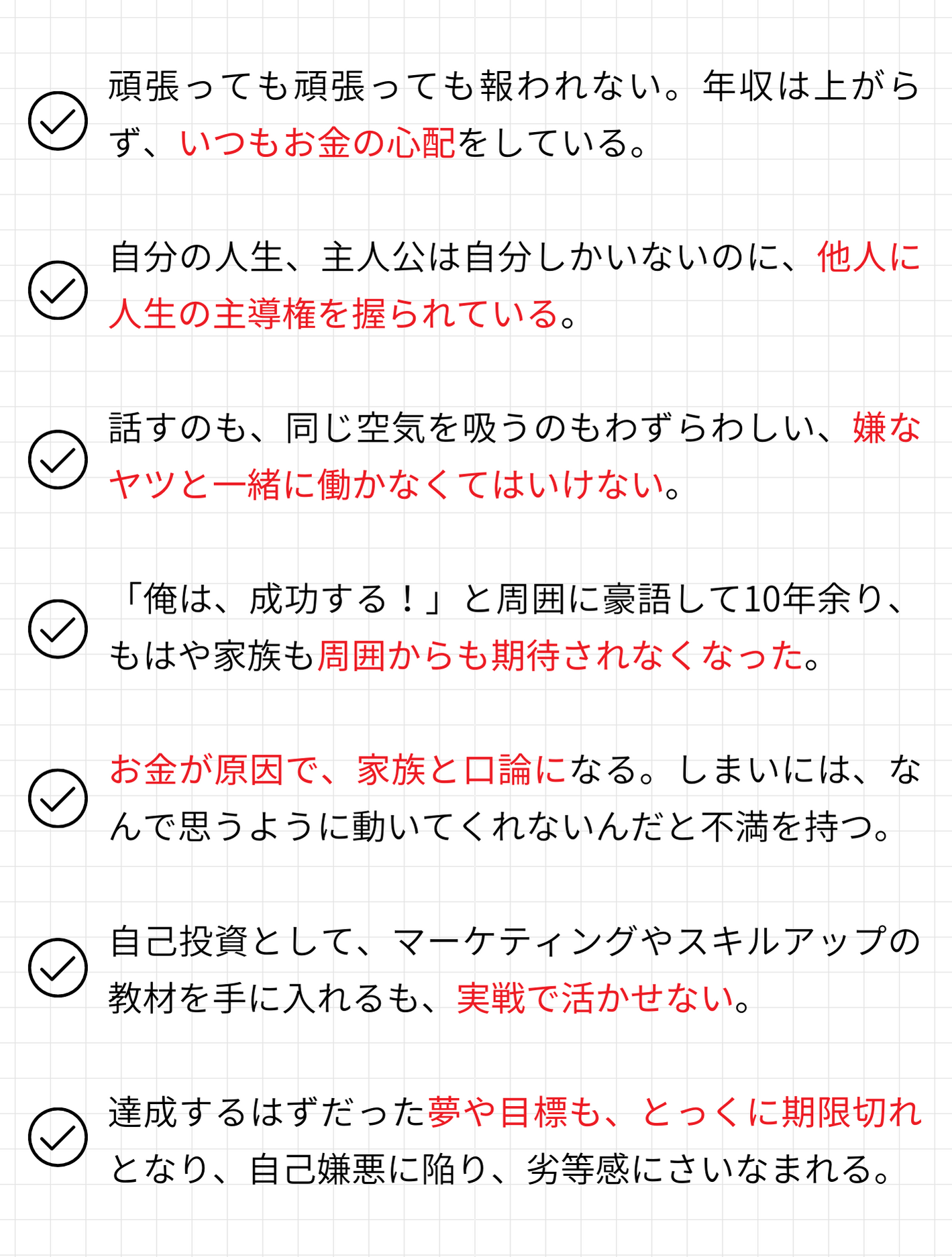 だから、10年前の僕と同じように悩み、くすぶっているあなたに、役立ててほしいと思います。これから日本は、給料は上がらないのにモノの値段はますます高くなるといわれています。国民が苦しむ中、増税もされるでしょう。もしかしたら、僕と同じように、あなたの愛する人は、あなたが成功するのを待ってくれないかもしれません。