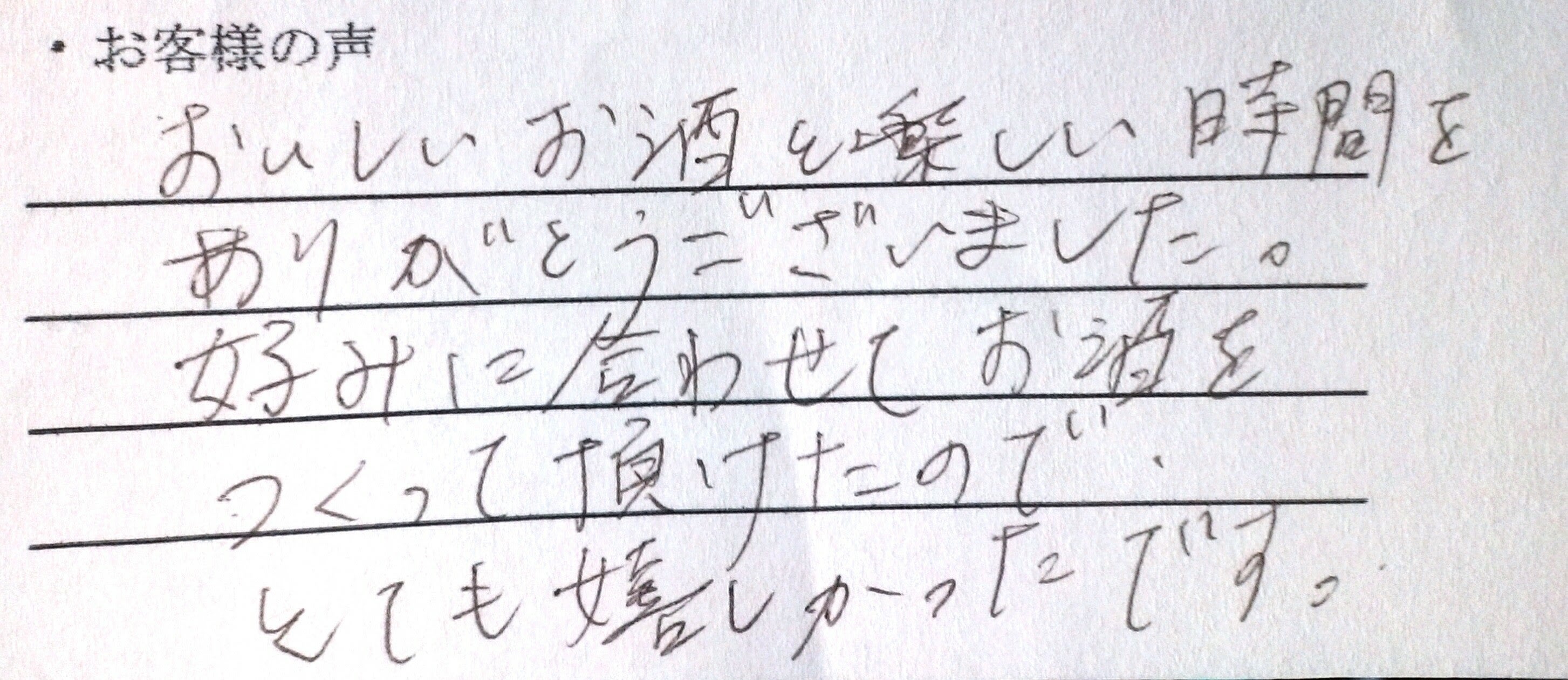 そしてそこから、単にドリンクやフードを提供するにとどまらない存在としてのBARというものが、一人でも多くのお客様の心の拠り所になっていくお手伝いができれば幸いです。