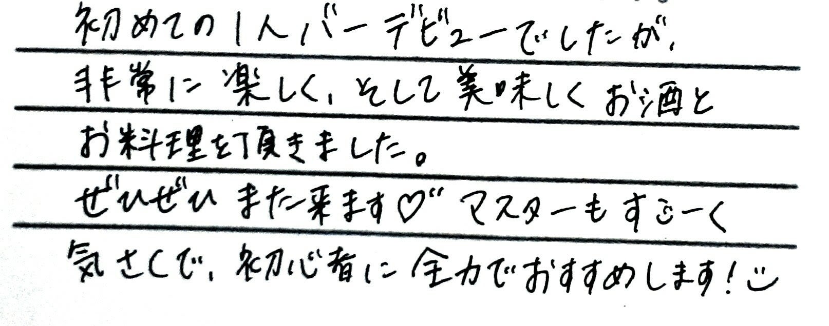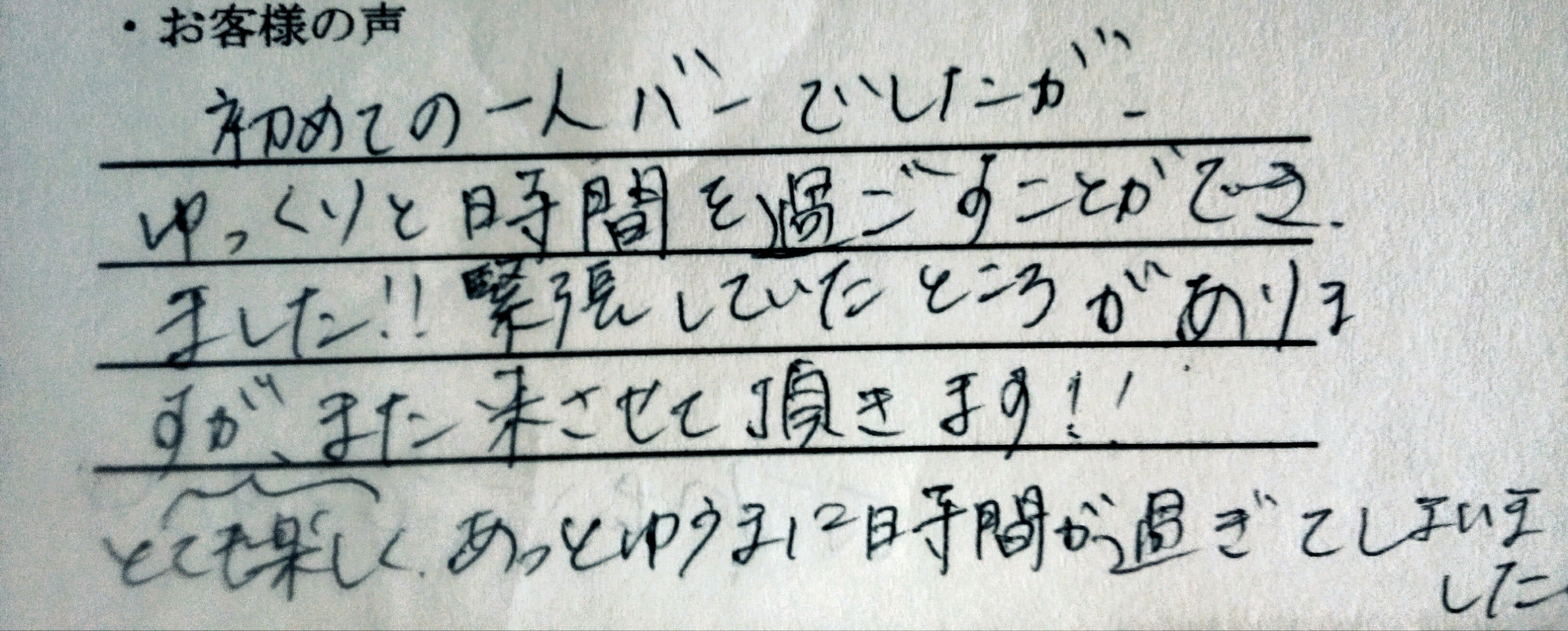 聞けば、さらにそのうちほとんどの方が「お一人様BARデビュー」だそうです。