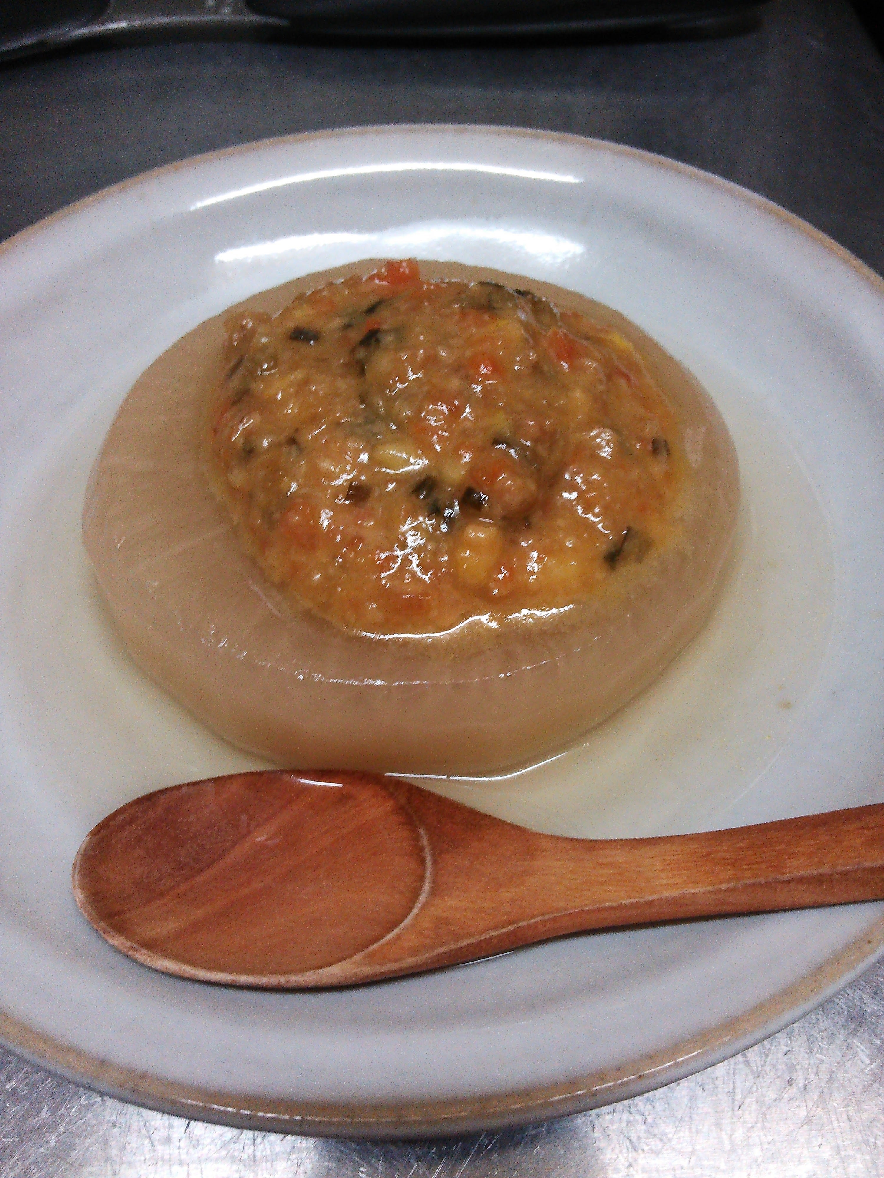 画像は「コンソメ大根そぼろ味噌餡がけ」