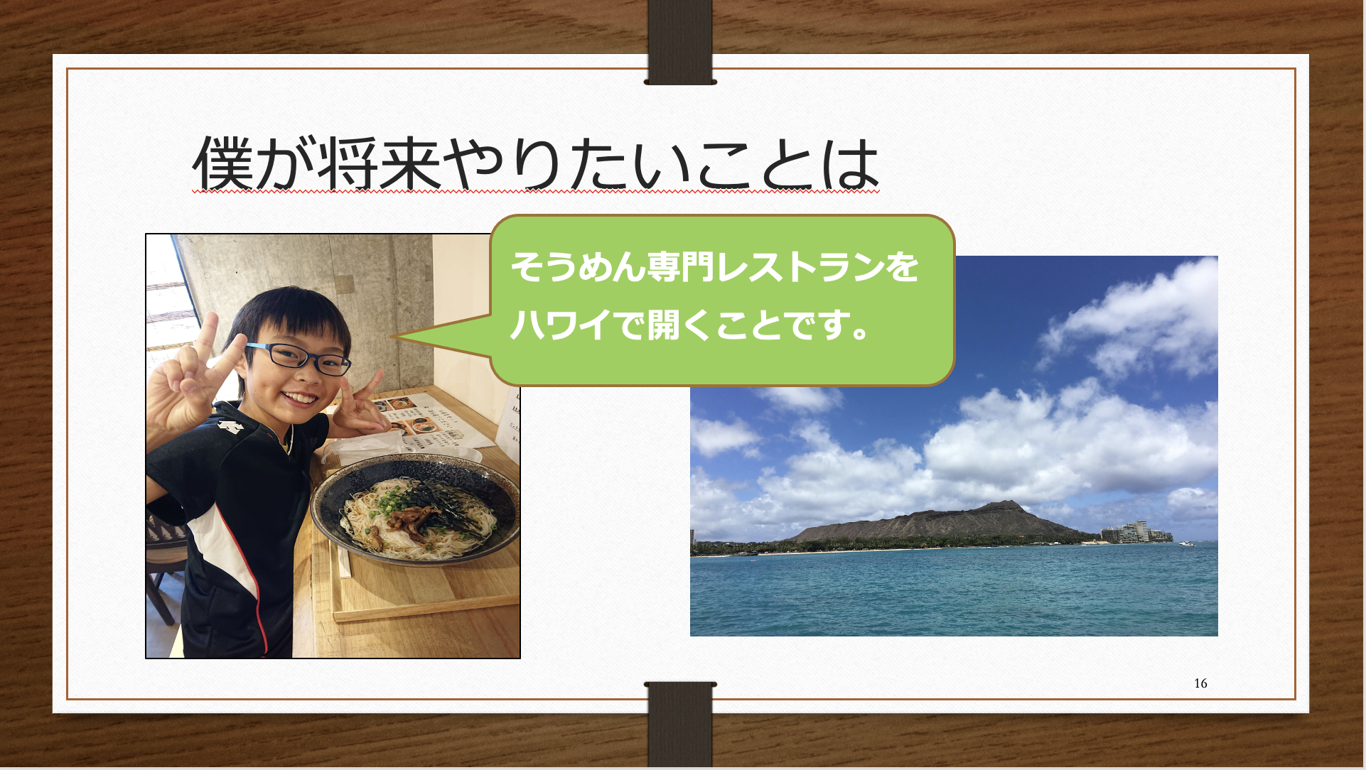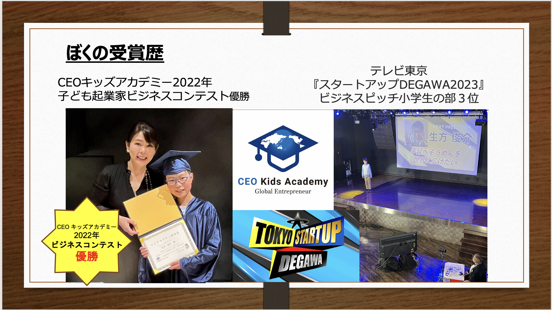ぼくがCEOキッズアカデミーでビジネスを勉強したときに、自分の好きなことでだれかが困っていることを助ける事業を考えるという宿題があり