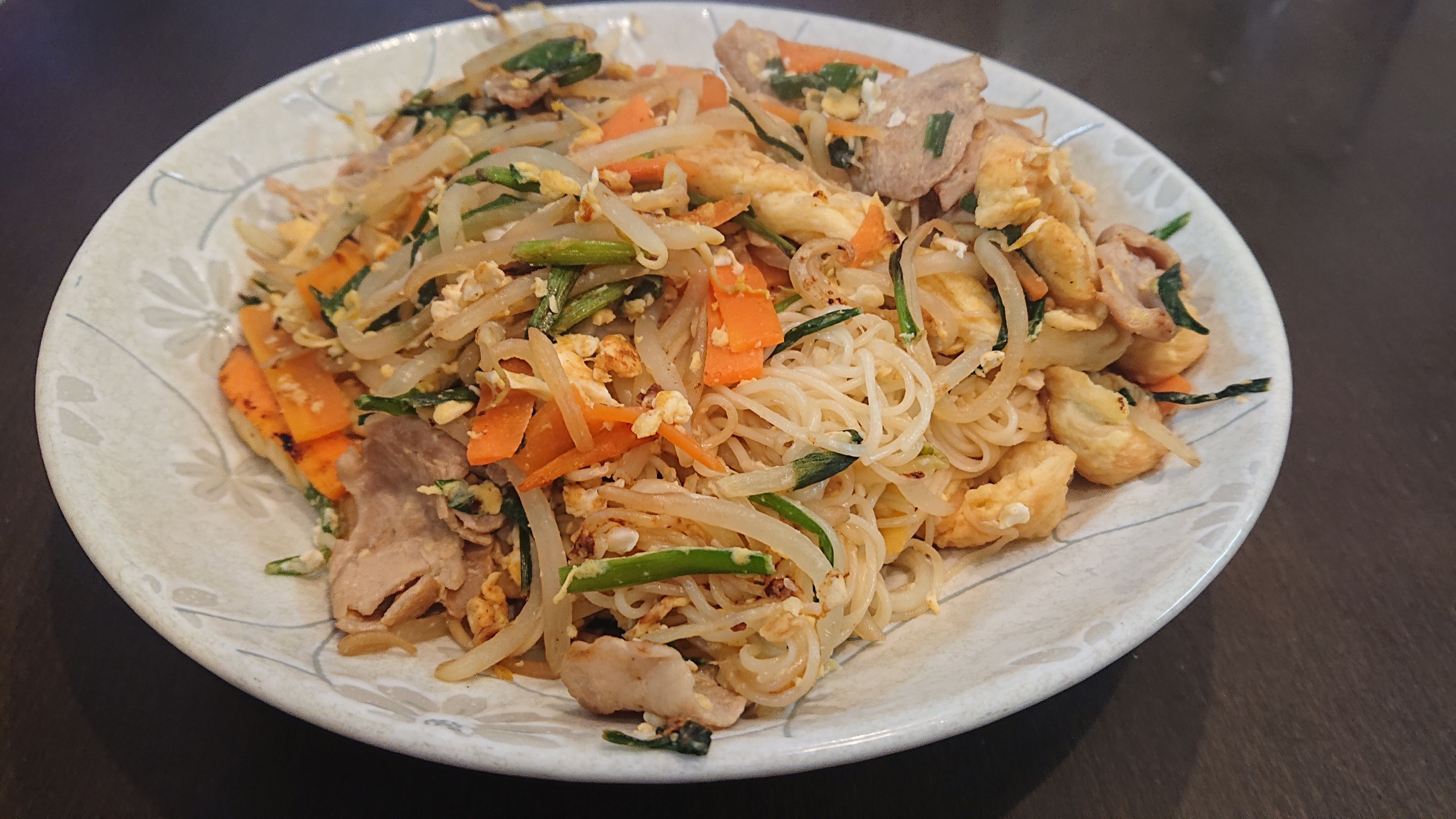 今日のお昼はふーそーみんチャンプルーです。ふーチャンプルーとそーみんチャンプルーまとめちゃいました。