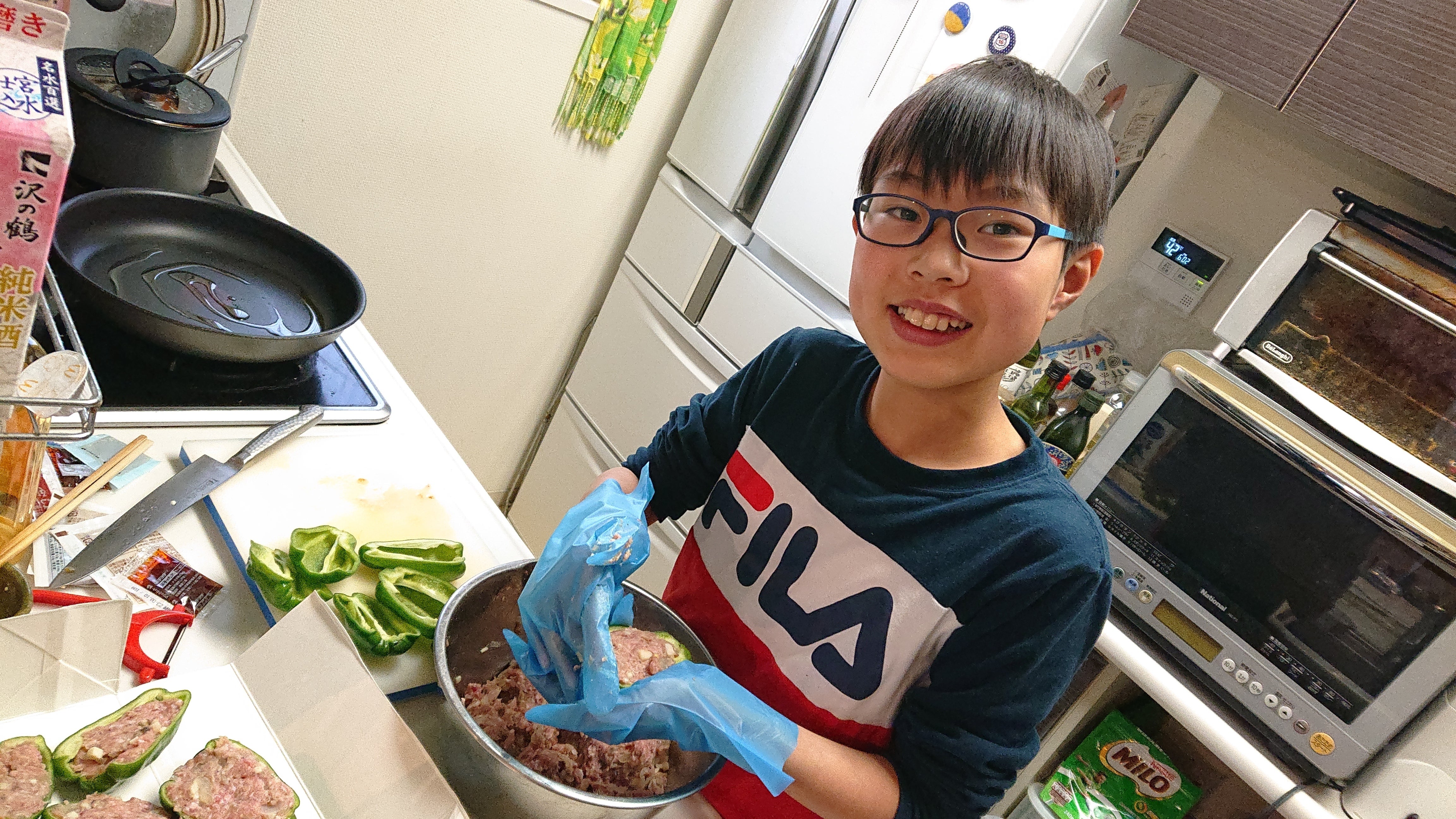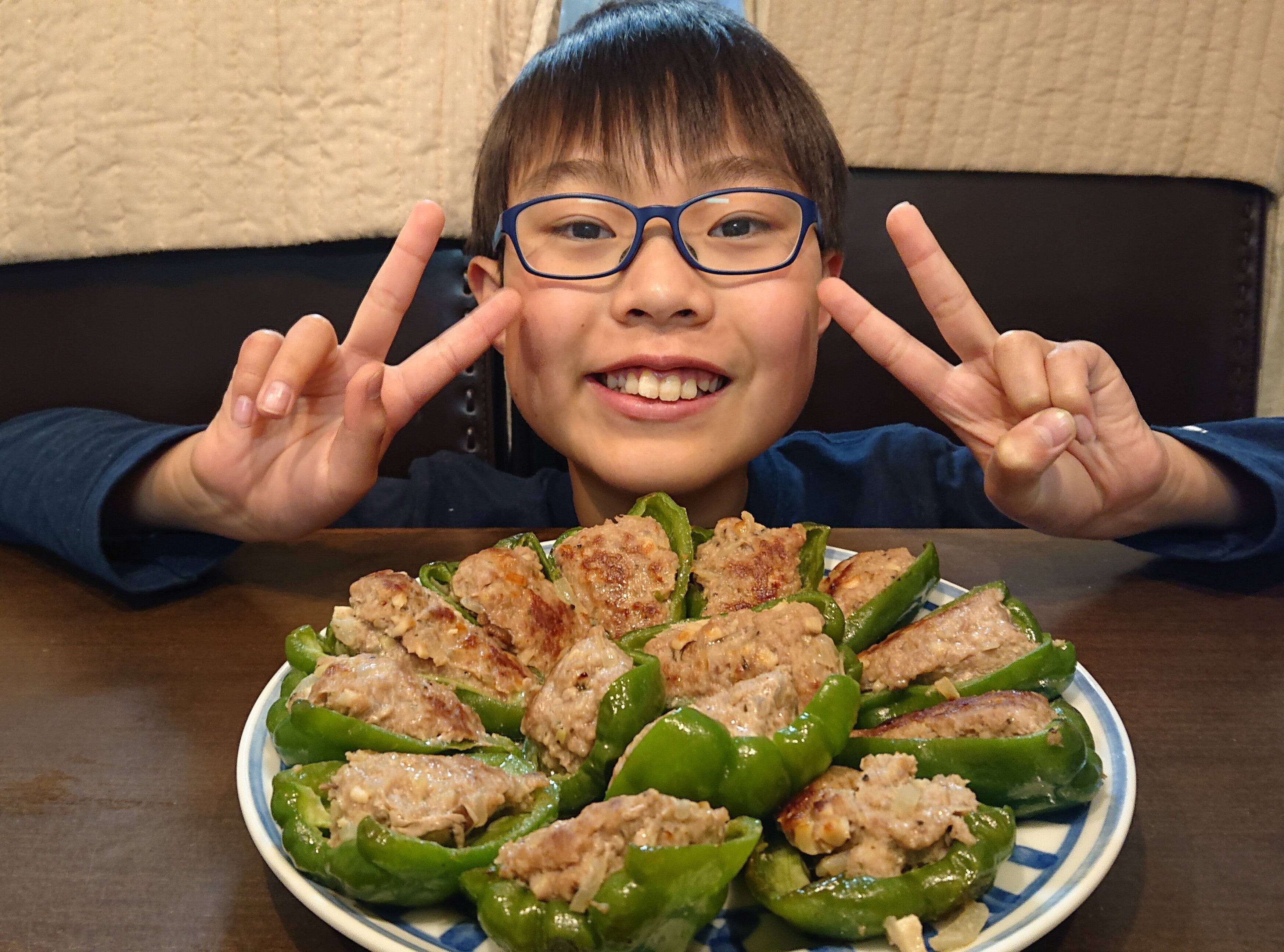 今日はそうめん料理はお休み。肉詰めピーマンを作りました。