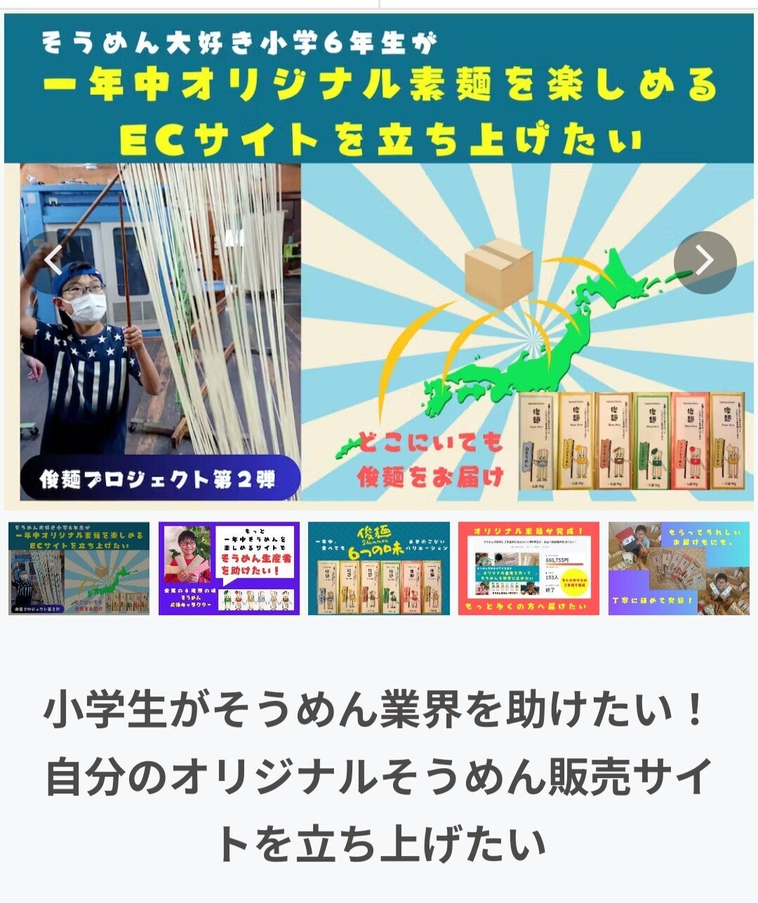 引き続き手延べそうめんを盛り上げるためECサイトで俊麺を売るなど色々活動を広げたいとクラファン第二弾を立ち上げました。