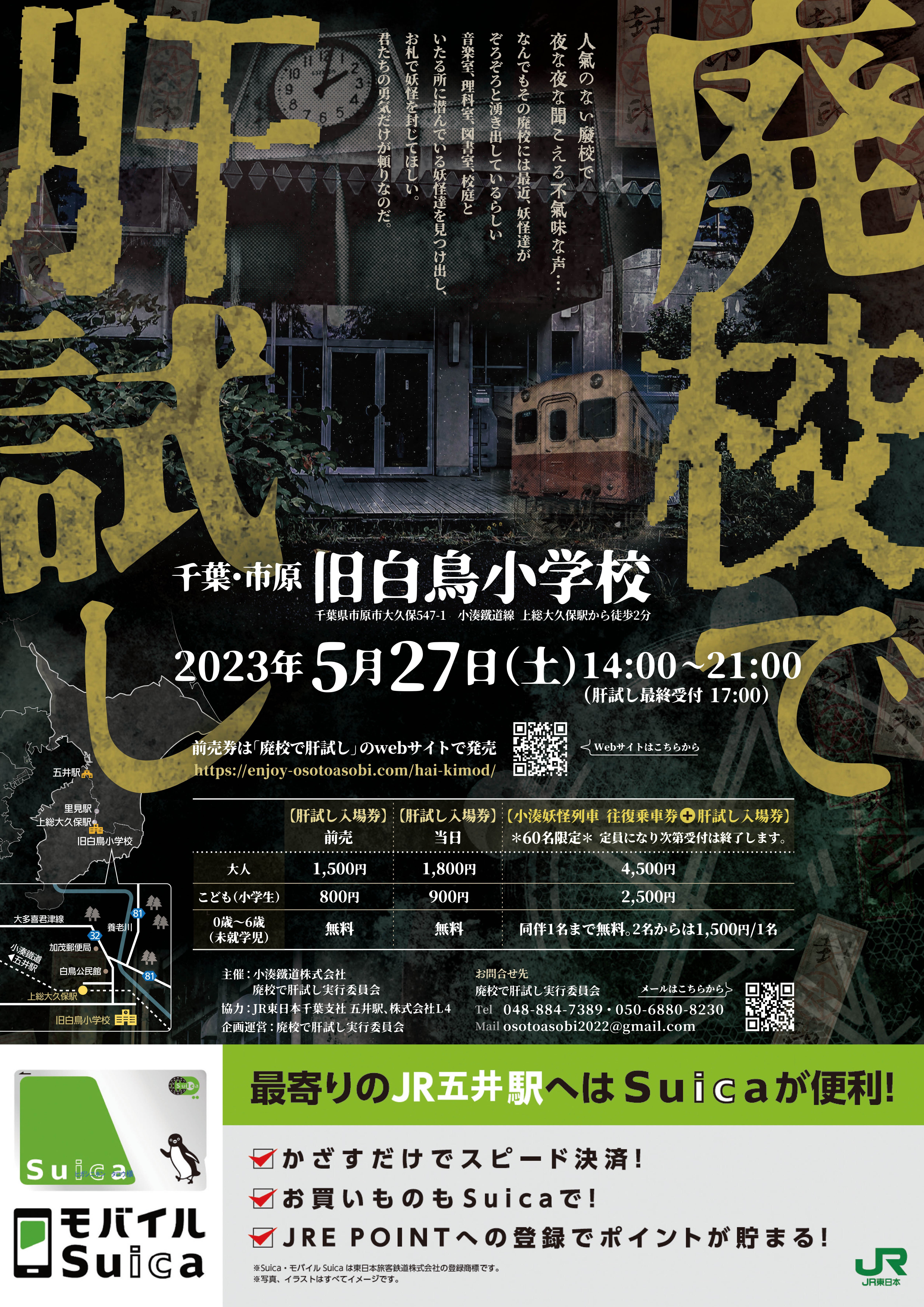 肝試し入場券がついた小湊鐡道様往復貸切の乗車券となります。