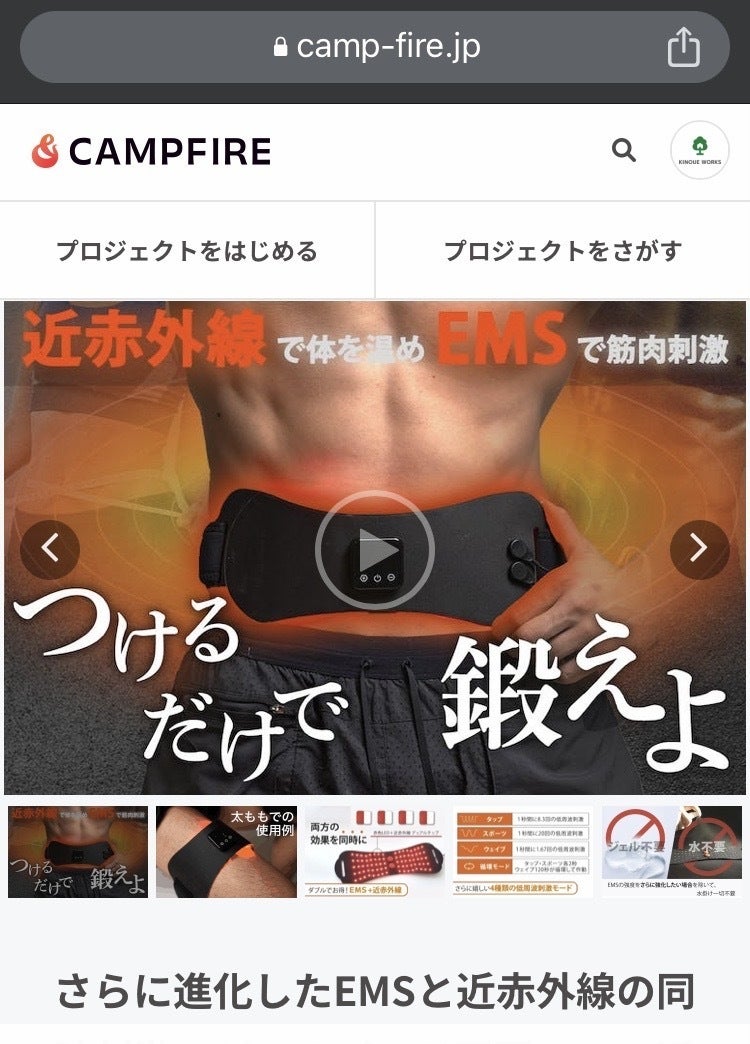 本日よりプロジェクトスタートしました!KINOUE WORKSの齋藤と申します。「ユースPlus EMS近赤外線温熱ベルト」は、近赤外線でカラダを温めながら、EMSの低周波刺激を与えることができる新感覚のEMSベルトです。(^^)この商品は、パソコンで作業することが多い私が、少しでも普段の運動にプラスできるようなEMS機器を探していたときに見つけた商品でした。実際につけてみると、近赤外線でじんわりと汗ばんできます。そしてEMSの刺激で筋肉が収縮しているのがわかります。この2つがかけ合わさることで、EMSだけでは得られない新たな運動の刺激を感じることができるのだと思います。ぜひ、皆さんにもこの刺激を体感してもらいたいと思っております。プロジェクト終了までどうぞよろしくお願いいたします。