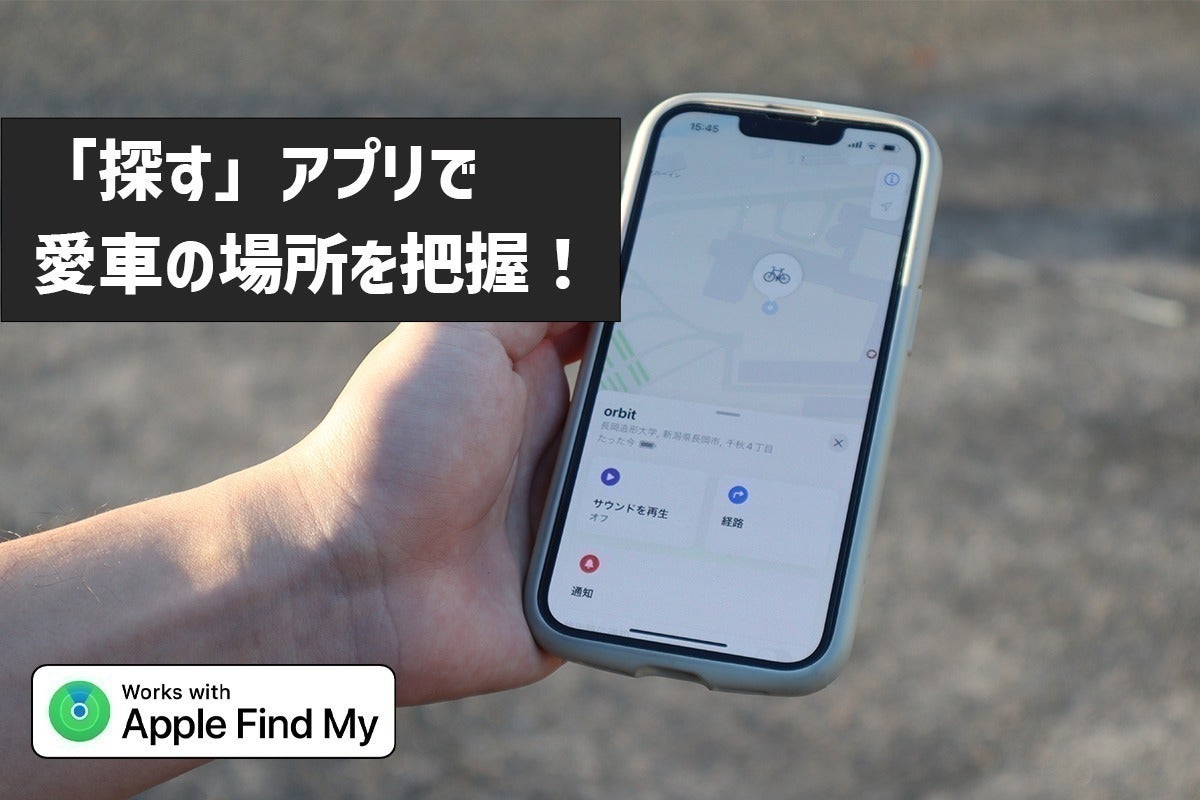 Apple標準搭載アプリ「探す( Find My)」を使って、VELO(自転車)の位置を把握することができます。