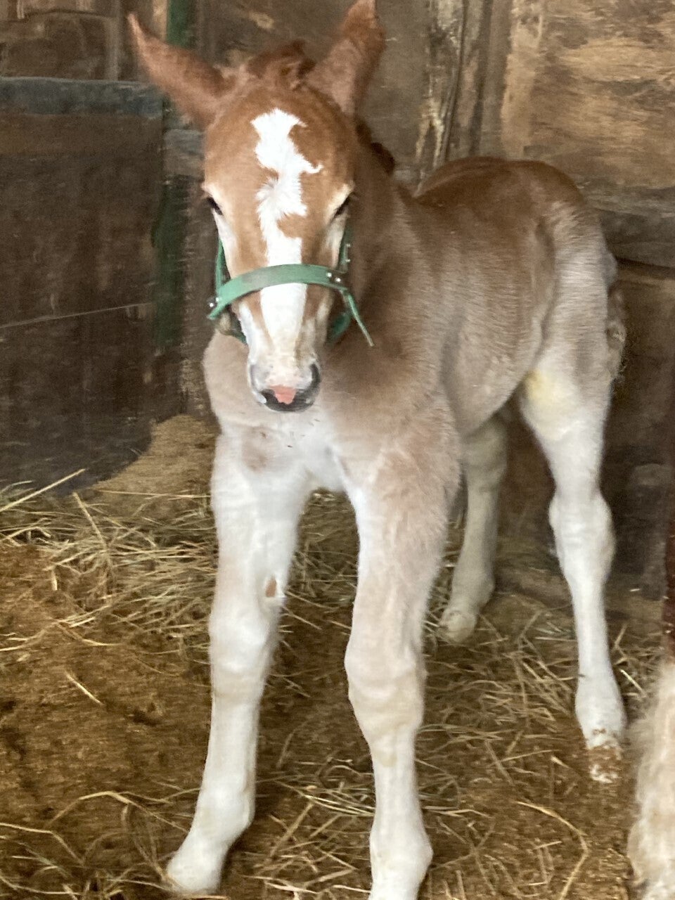『昇馬姫152』の特徴は馬の顔に白い模様が鼻筋まで流れている「大流星」があらわれてます、母馬にも同じ白い模様がありまったくうり二つです。