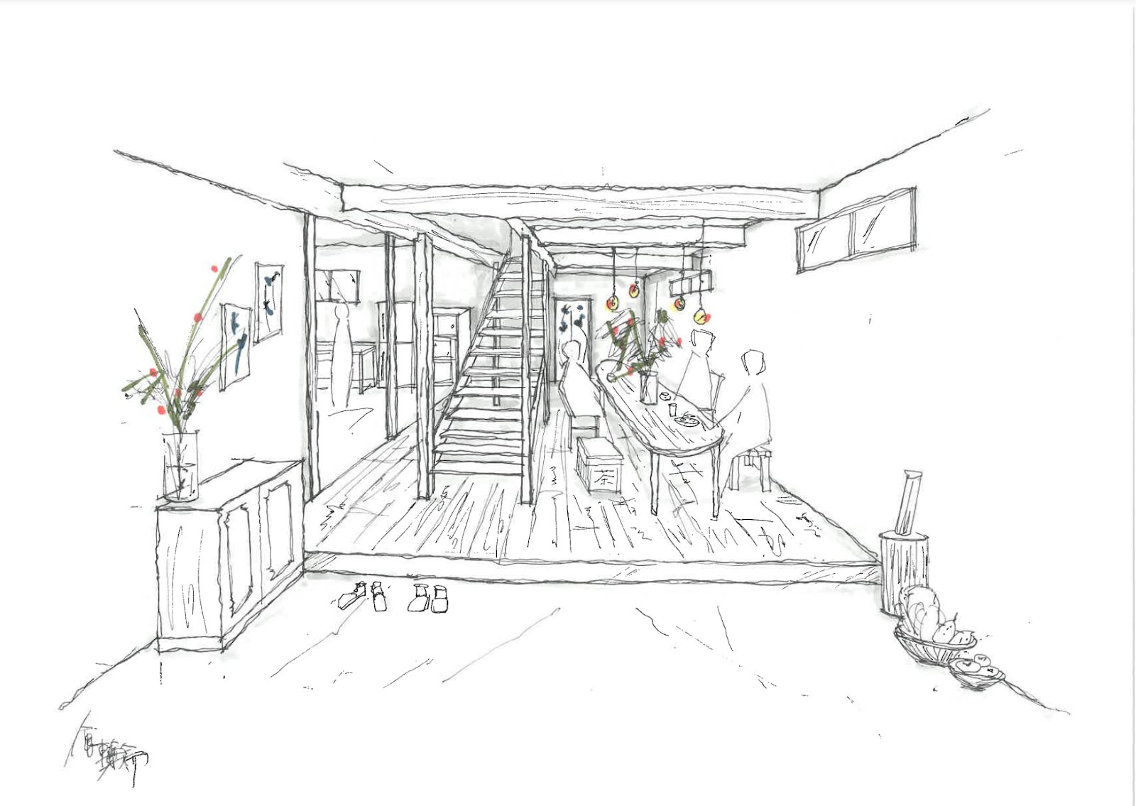今回のプロジェクト企画でのリビングダイニング「食卓」をみんなで囲むイメージ図