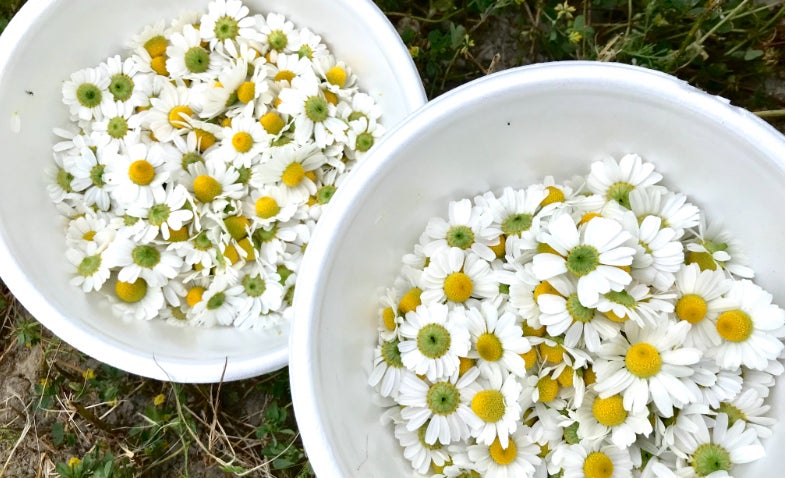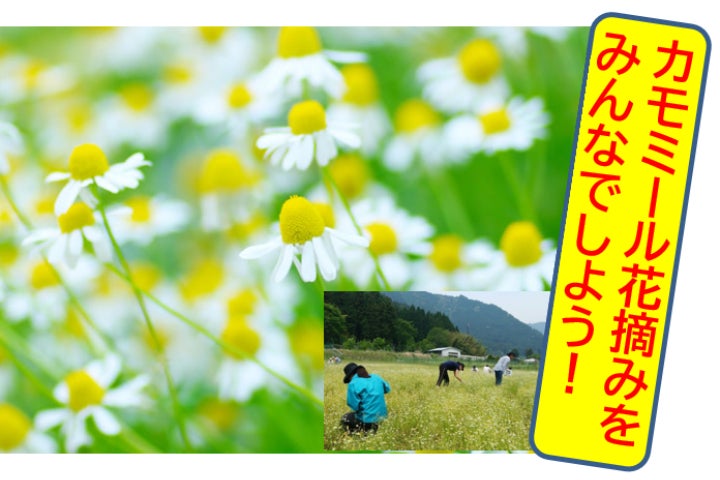 5月11日(木)、12日(金)、18日(木)、19日(金)、25日(木)、26日(金)の平日に限りカモミール収穫体験募集します。
