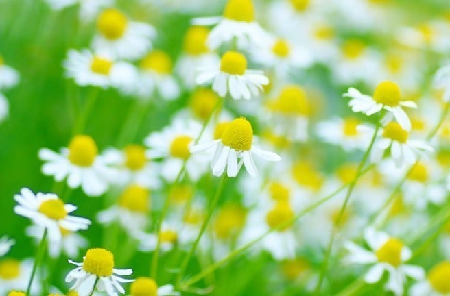 カモミールはヨーロッパでは「母の薬草」と言われ、体内の平滑筋を落ち着かせる効果があると言われ腹痛、生理痛などを和らげる効果があり、アズレン誘導体という成分が胃の粘膜を修復する作用があり、他にも冷え性や花粉症、化粧水として肌にもいいとされています。