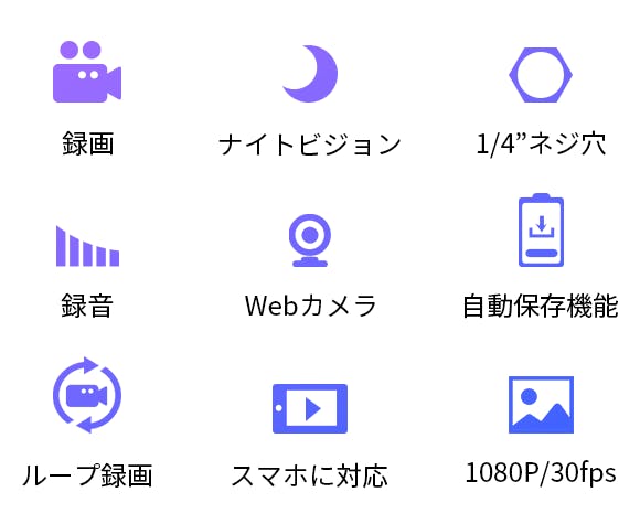 本体はコンパクトですが、最大1080P・30fpsの高画質録画に対応しており、映像を鮮明に記録できます。撮った映像はAVIファイル形式として保存されます。