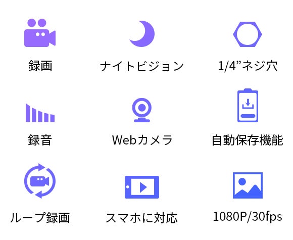 本体はコンパクトですが、最大1080P・30fpsの高画質録画に対応しており、映像を鮮明に記録できます。撮った映像はAVIファイル形式として保存されます。