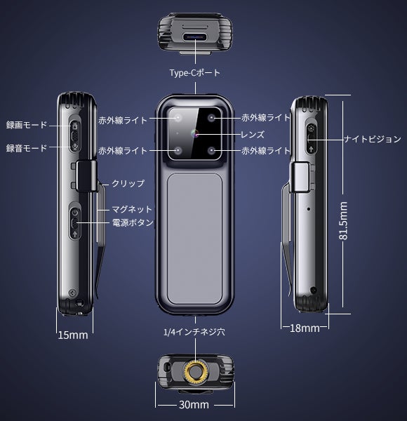 「M2」は録画・録音・ナイトビジョン・Webカメラ・USBメモリの合計5つの機能を持ち、様々なシーンで活躍するミニサイズのポータブルレコーダーです。