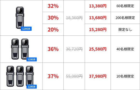 今回のプロジェクトはありふれた64GBと128GBのほか、256GBの大容量ストレージ搭載のバージョンも用意しております。用途に合わせてお選びください。