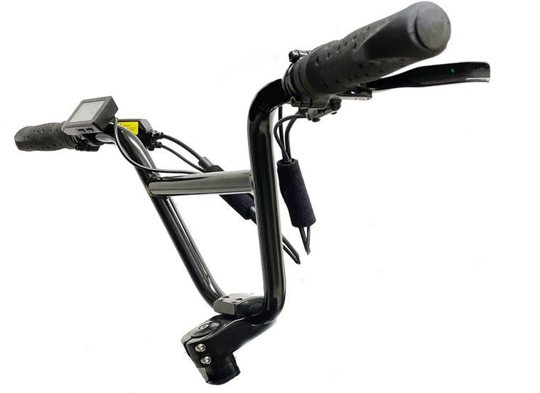 ハンドルバーは、タイオガ(TIOGA) MX コンプC 7.4-10 BMXハンドルバー 幅585mm 素材 : 高炭素鋼 アップライトなポジションが取りやすいすく、ブレーキーとマルチディスプレイ以外 無駄な装置もないシンプル設計。