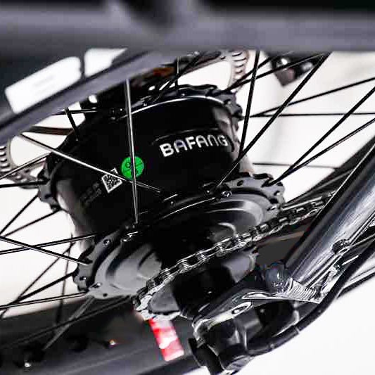 ● Bafang H720 500W ハブモーターは、トルク95Nmでクラス最強。自動式デュエルスピードシステムを搭載したため、モーター自体が走行中の速度感知により、自動的にギアボックスのレシオ調整が可能です。トリプルセンサーシステム(トルクセンサー1個、スピードセンサー2個)を装備。効率的なアシストパワーは信頼性も高くお都市を横断し、丘を登り、目的地へ迅速に到達することを可能にします。このモーターに合わせるバッテリーは、48V 14 .5Ahを選択。航続距離 80km以上を実現します。また、スマホなどの充電用にUSBポートも用意されています。